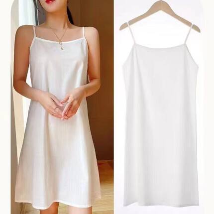 棉绸吊带裙白色内衬裙连衣裙防透防走光内搭汉服打底宽松背心衬裙