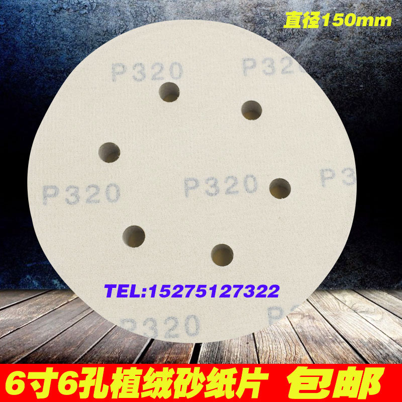 极速6寸6孔b圆盘植绒干磨砂纸气动磨机抛光自粘砂V片原子灰打磨砂