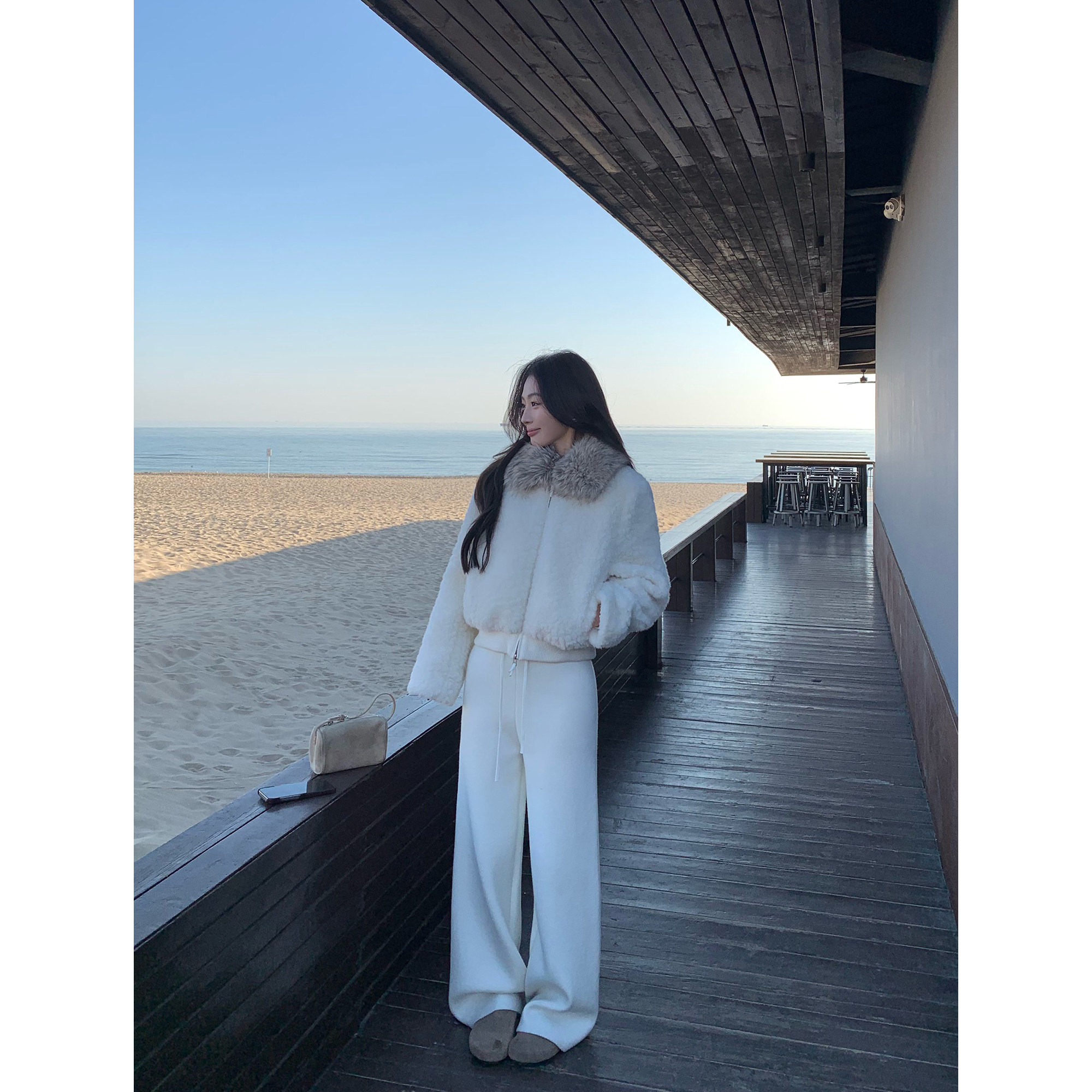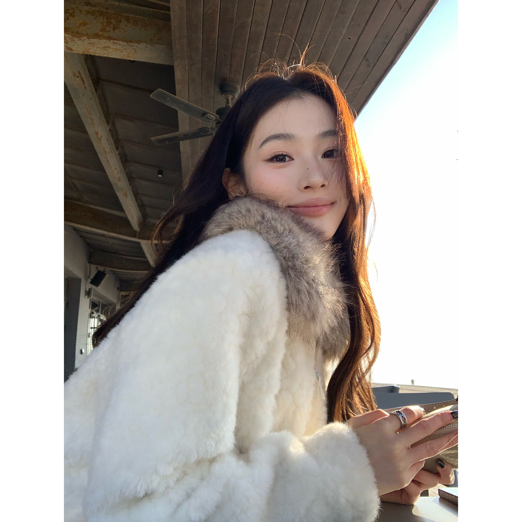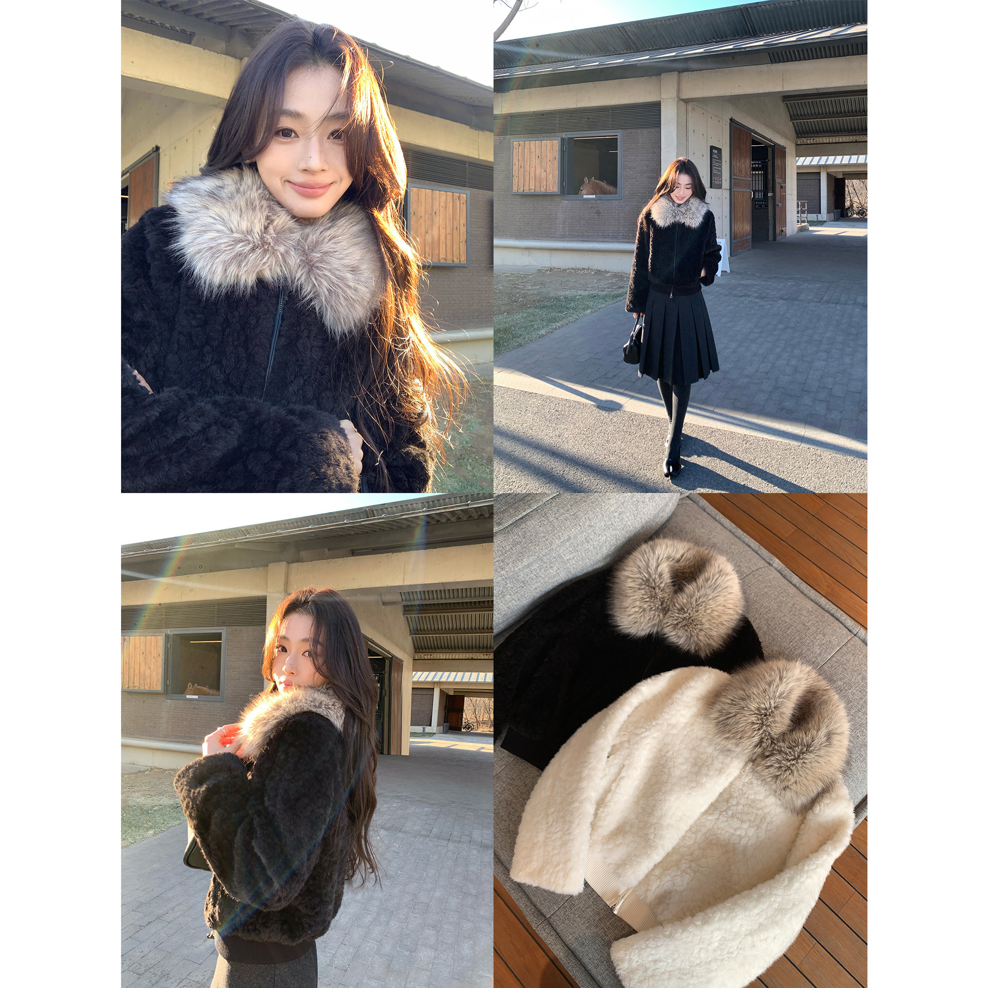 pusumede 绒间星迹 短款羊羔毛绒仿皮草女冬季软糯保暖大毛领外套