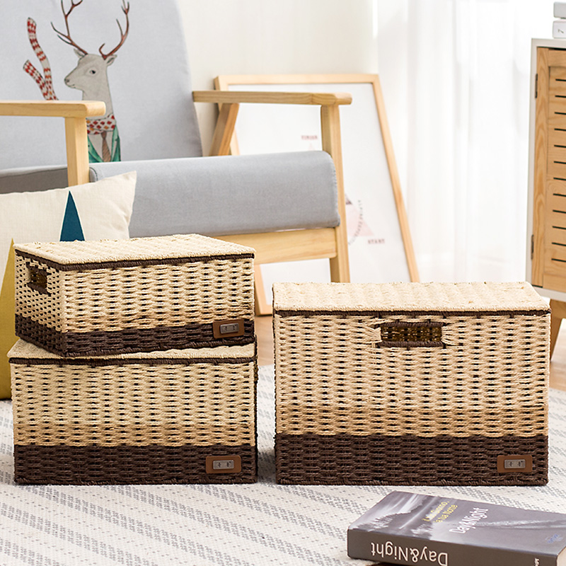 收纳筐藤编篮布艺草编筐桌面零食筐编织储物箱带盖收纳盒篮子储物