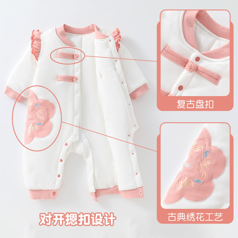 婧麒婴儿棉服新生儿连体衣冬季加绒款夹棉男女宝宝加厚外出服哈衣