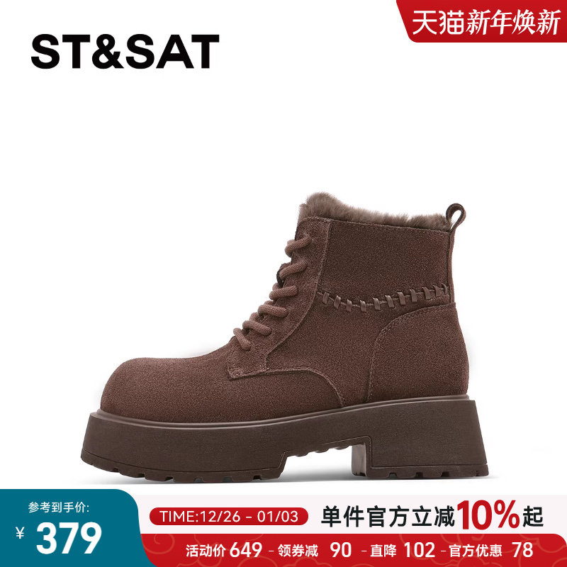 星期六女鞋加绒马丁靴女款2025新款冬季保暖厚底短靴英伦骑士靴子