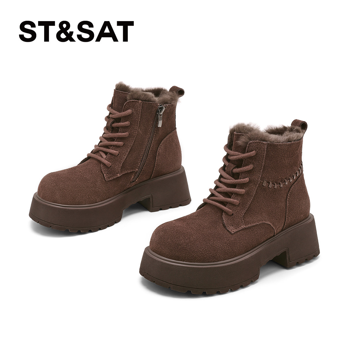 星期六加绒马丁靴女保暖厚底短靴