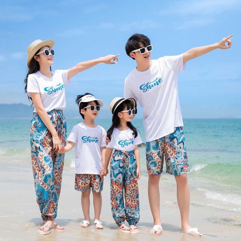2025新款亲子装夏装一家三口四口母女装全家旅游度假拍照沙滩套装