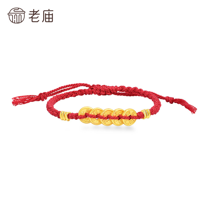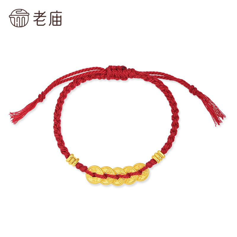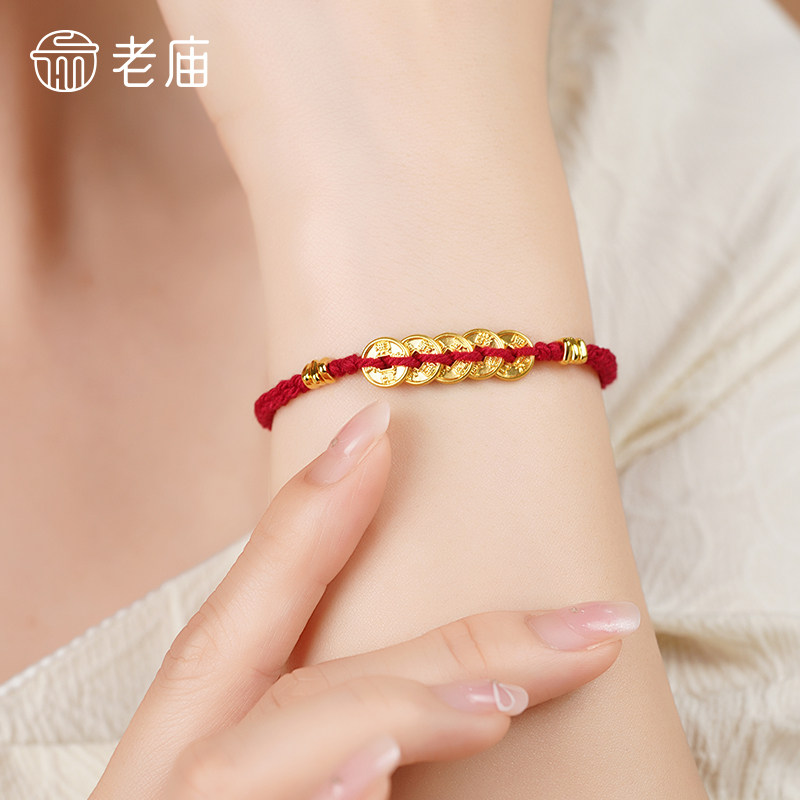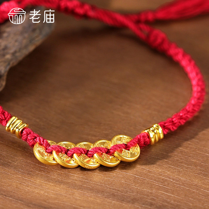 庙黄金足金五帝钱手绳五钱串联外圆内方聚财聚福吉祥好运不断