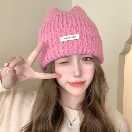帽子女秋冬季2025新款可爱猫耳毛线帽大头围保暖护耳针织帽子冷帽