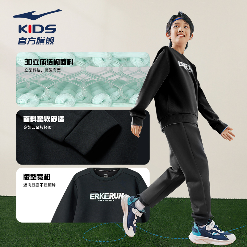 鸿星尔克童装儿童运动服套装秋季保暖男童卫衣卫裤女童裤子两件套