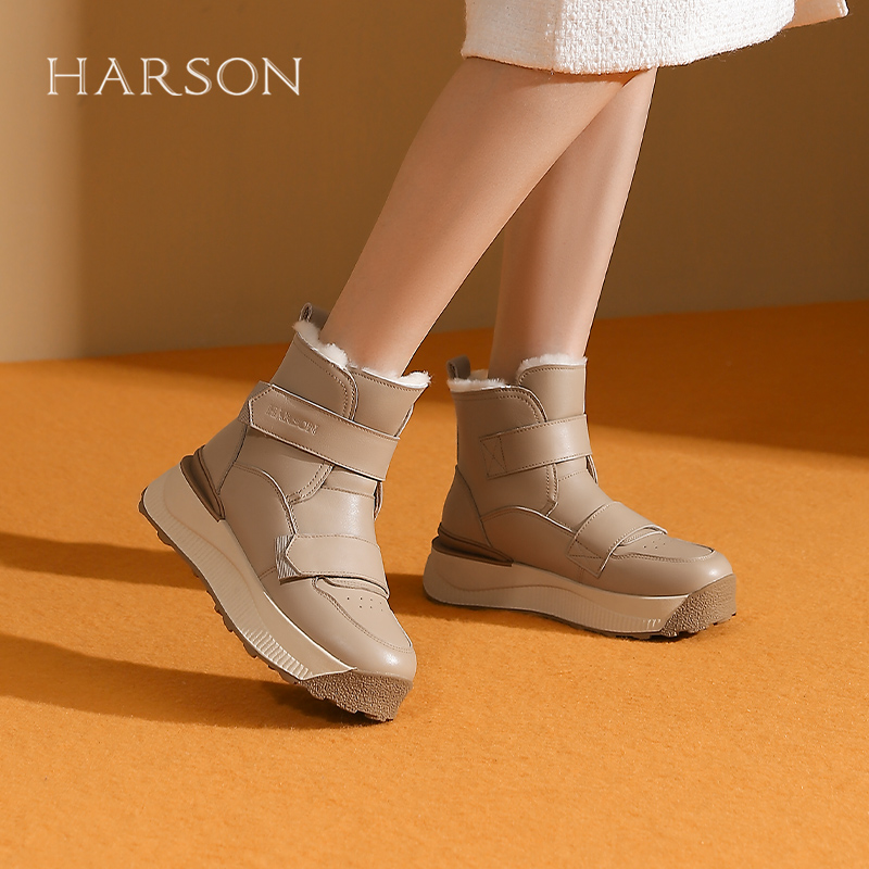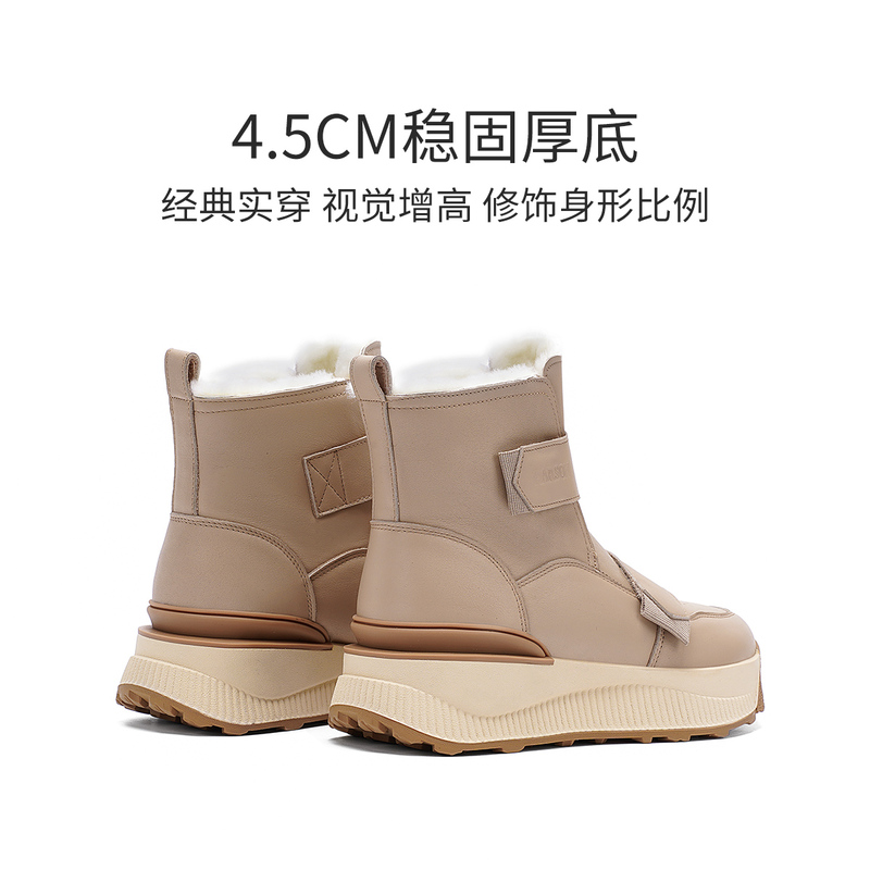 哈森皮毛一体加厚雪地靴女冬季新款加绒厚底休闲女靴HA240603