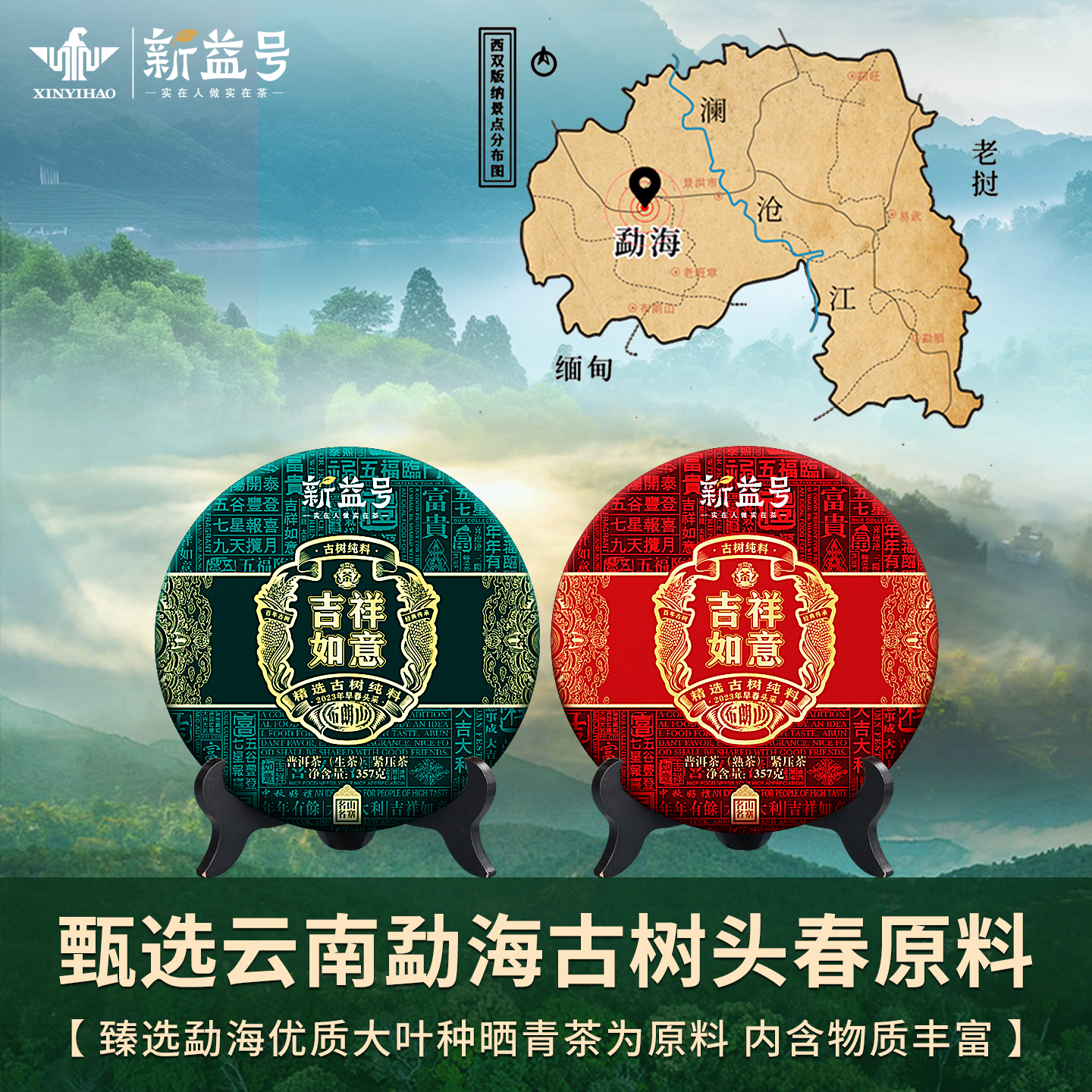 普洱茶礼盒装茶叶送礼新益号云南古树普洱茶生茶熟茶饼七子饼送人