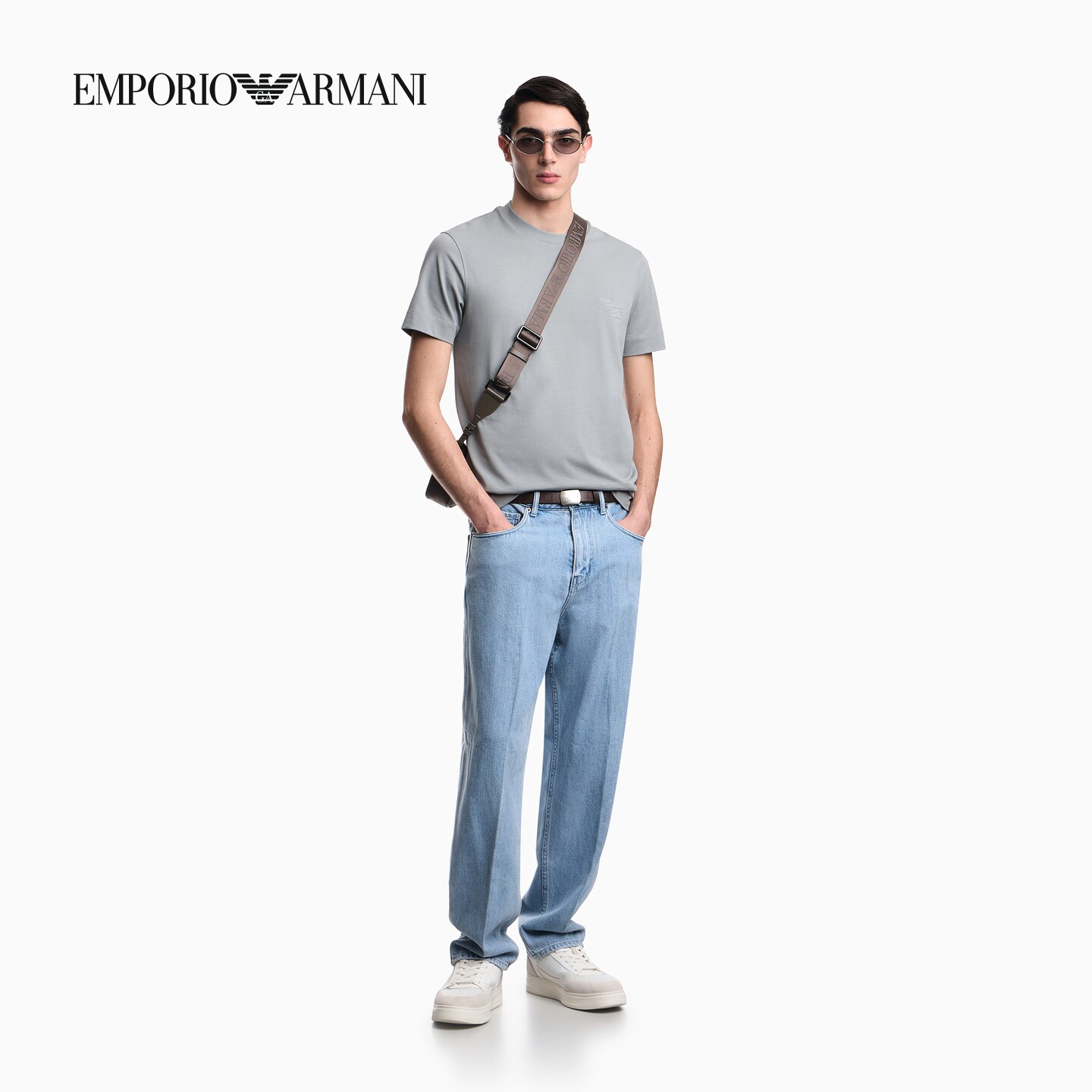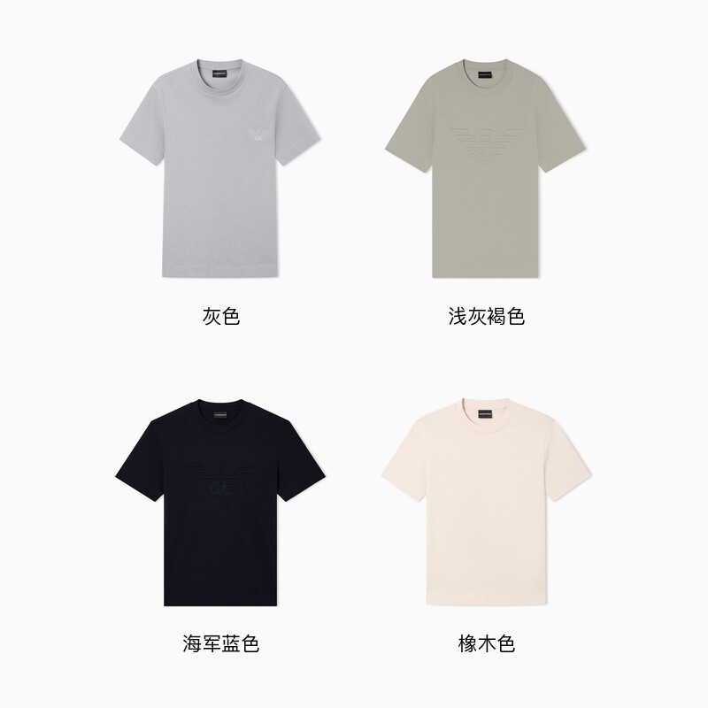 EMPORIO ARMANI/阿玛尼春夏新款男士圆领短袖正肩刺绣纯棉重磅T恤