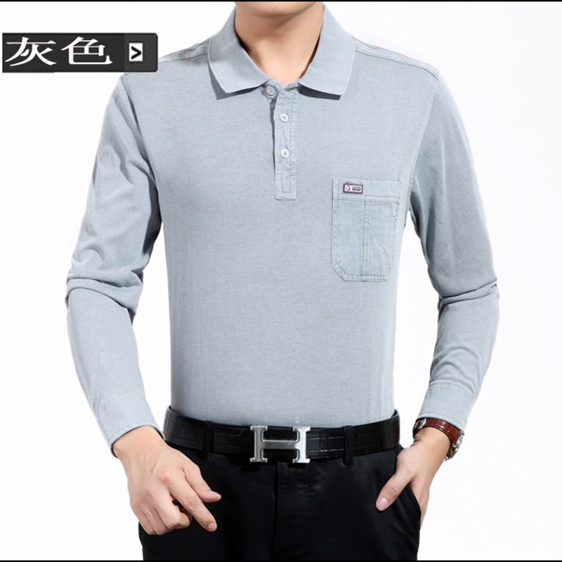 中年男士长袖T恤夏季薄款4050岁爸爸春秋装宽松中老年体恤衫