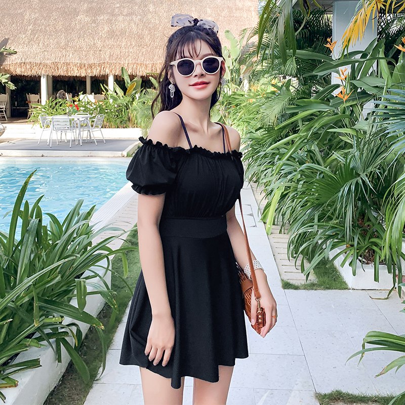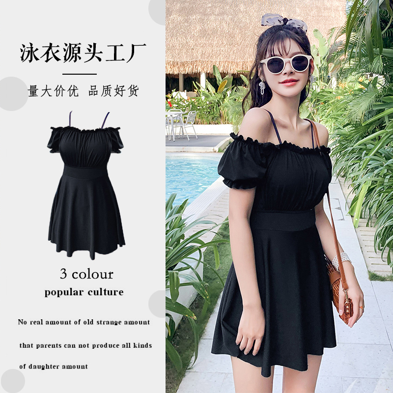 连体泳衣女韩国ins厂家直销遮肚显瘦纯色平角裙式新款女士游泳衣