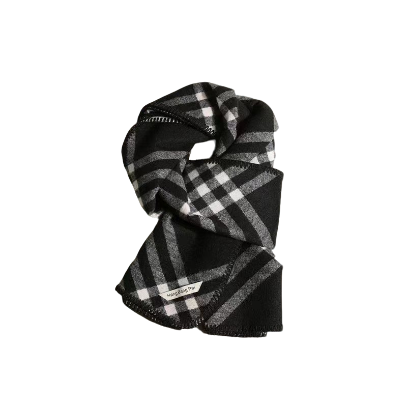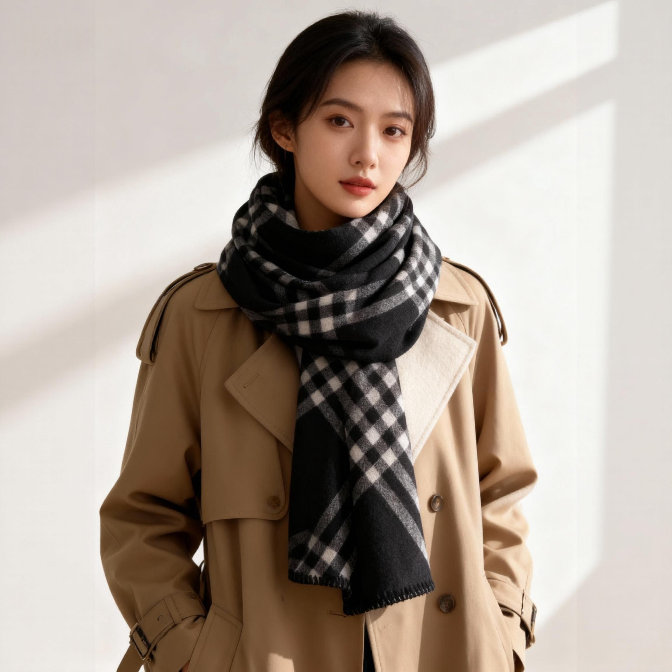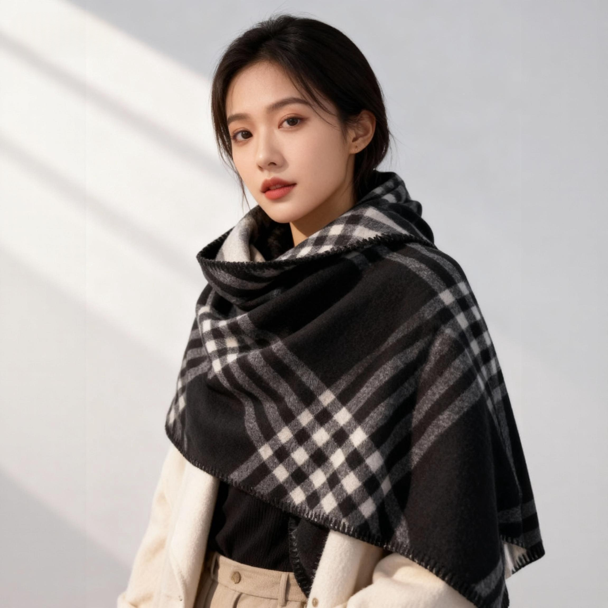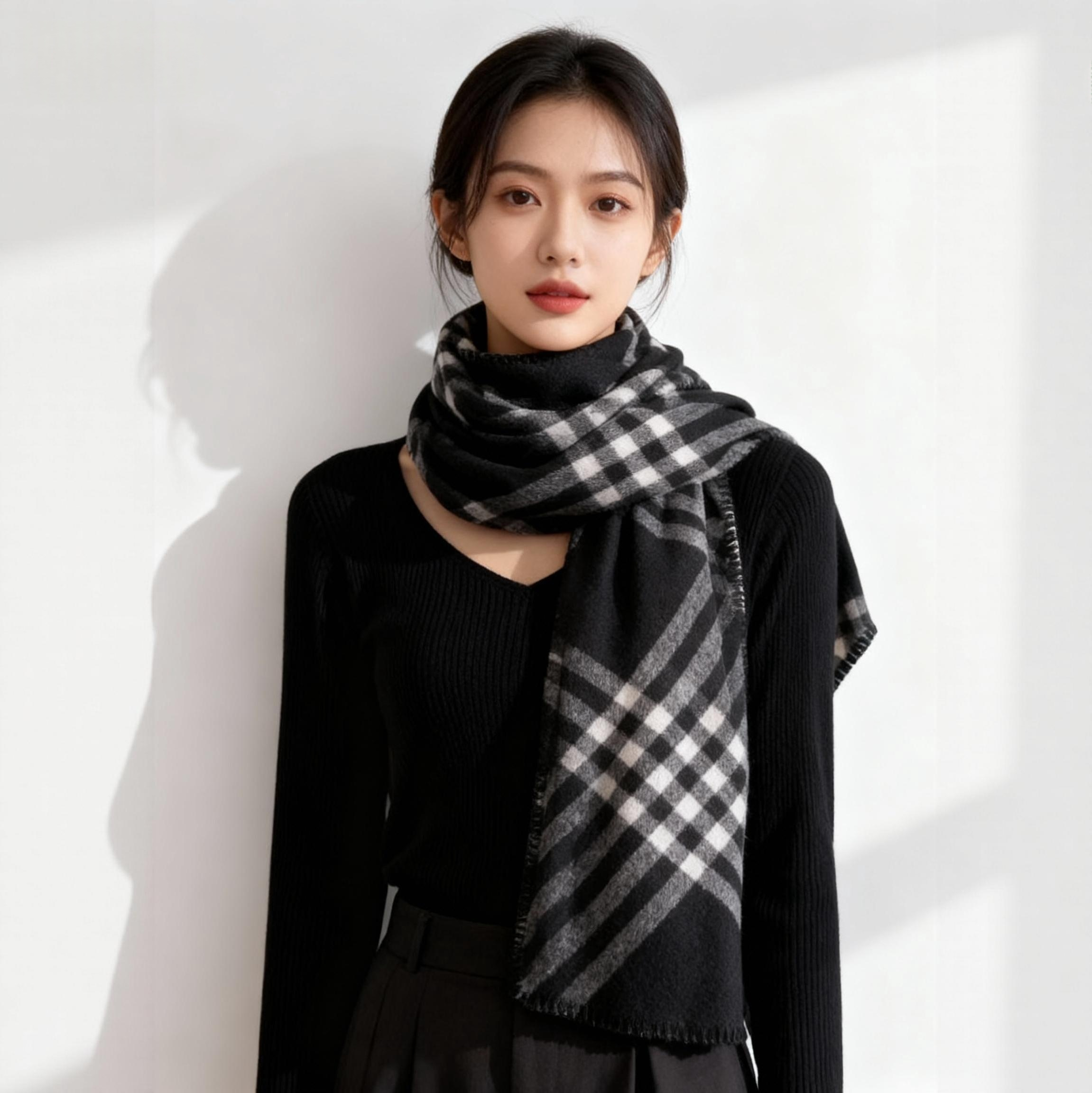 含羊毛格纹围巾双面长款披肩两用男女秋冬黑白格英伦风围巾礼盒