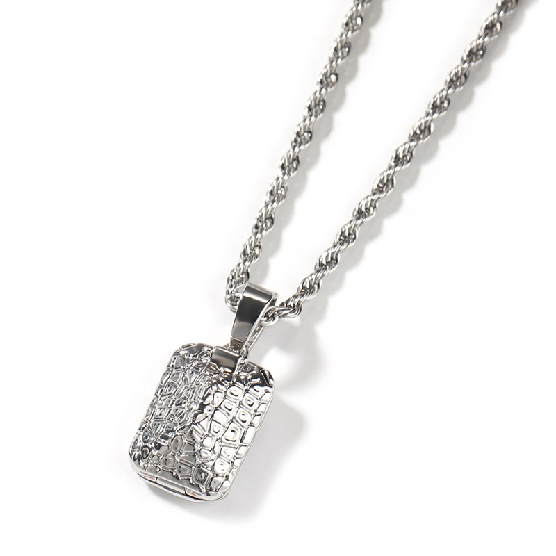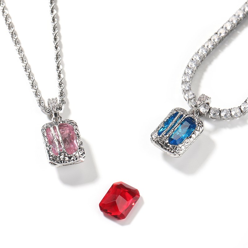 欧美新款嘻哈翻盖彩色宝石吊坠项链铜银色潮牌男士项.链一件代发