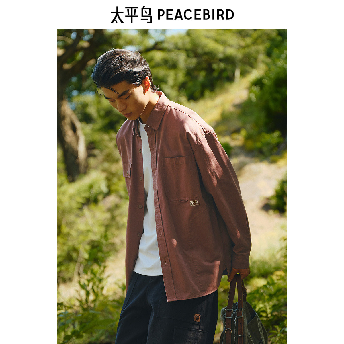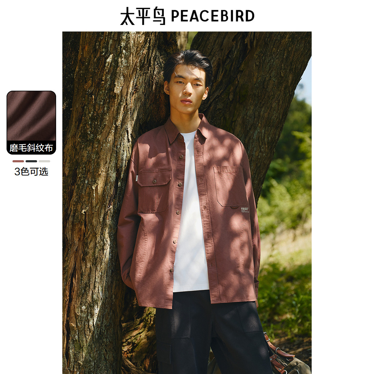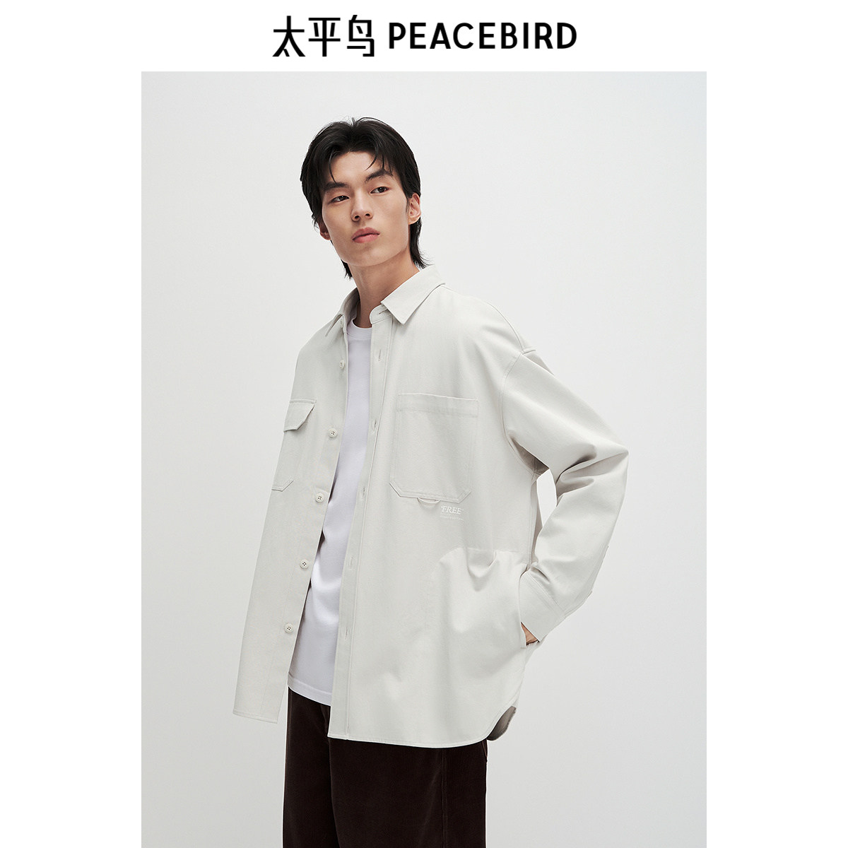 太平鸟男装 休闲衬衫24秋季新款大口袋工装衬衫暗纹肌理衬衣男