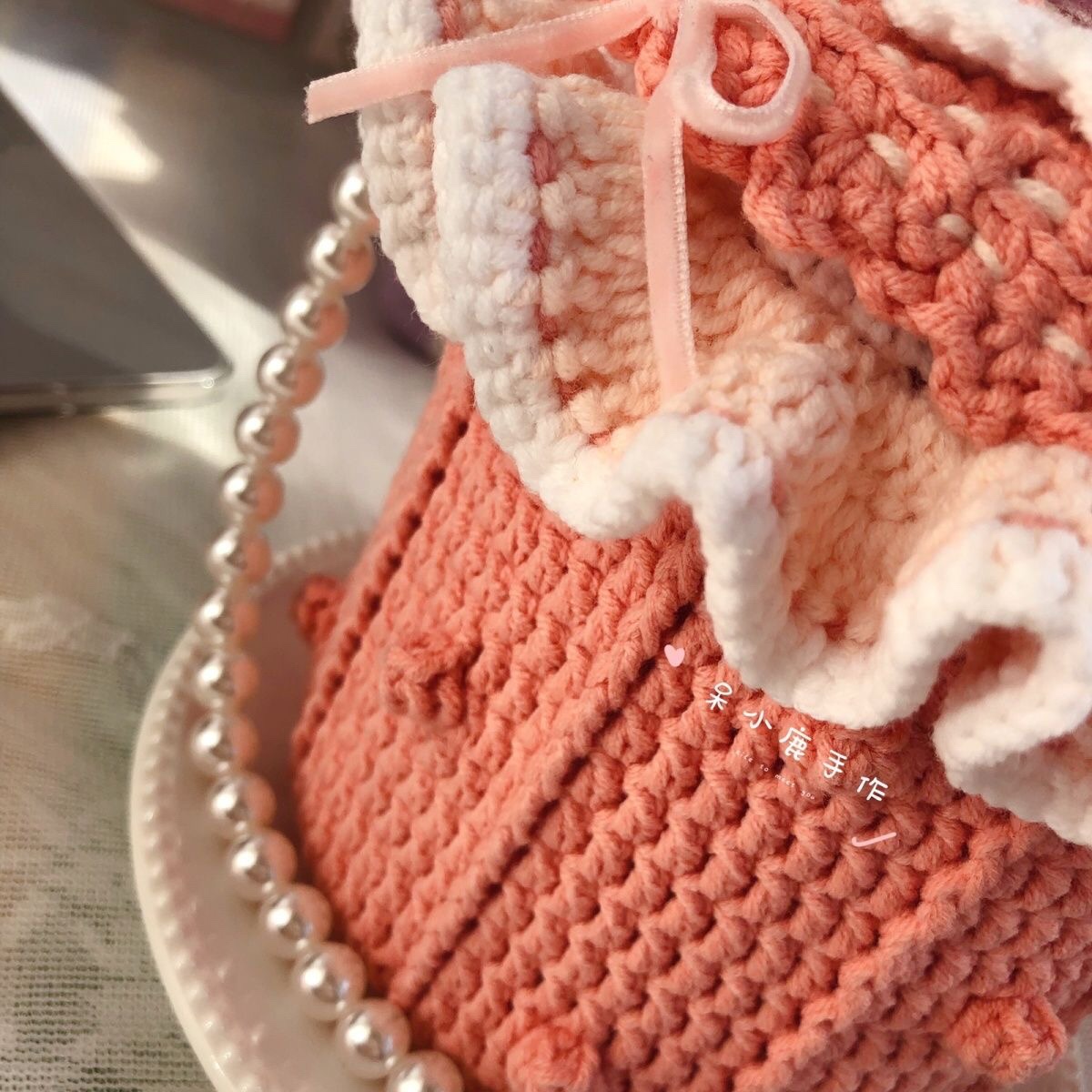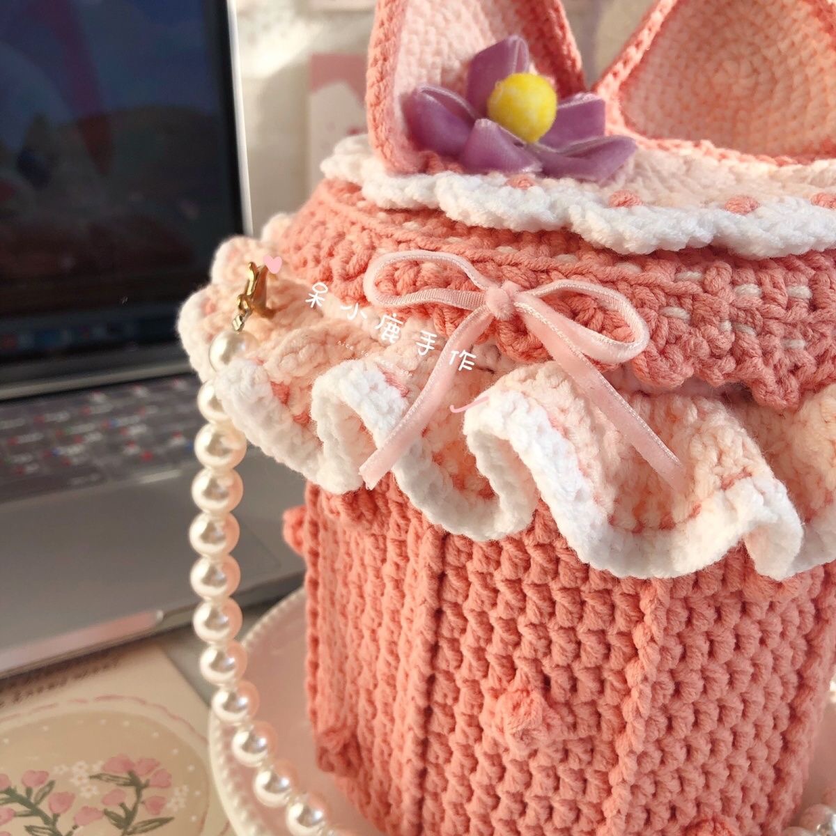 [成品]迪士尼玲娜贝尔手提斜挎水桶包钩针编织手工圆筒包洛丽塔包