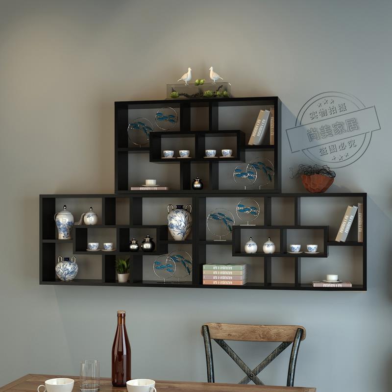 挂墙置物架置物架壁挂多宝阁博古架紫砂壶格子架墙上吊柜书架壁柜