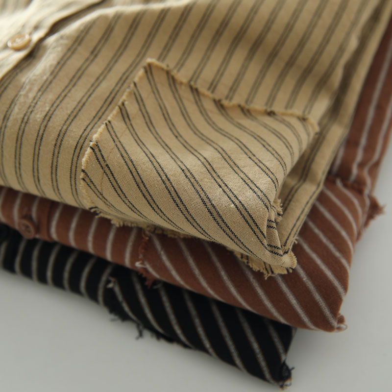 文艺复古竖条纹纯棉休闲长袖衬衫