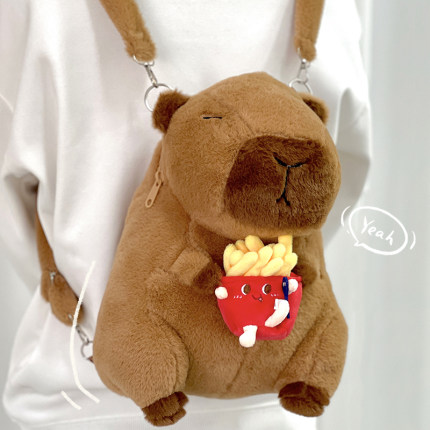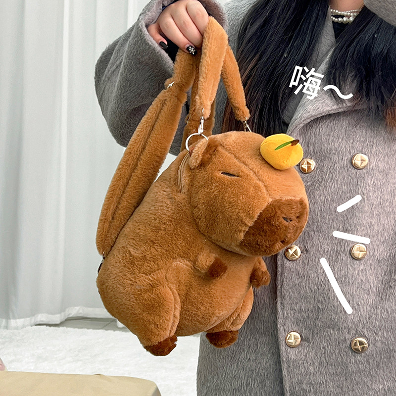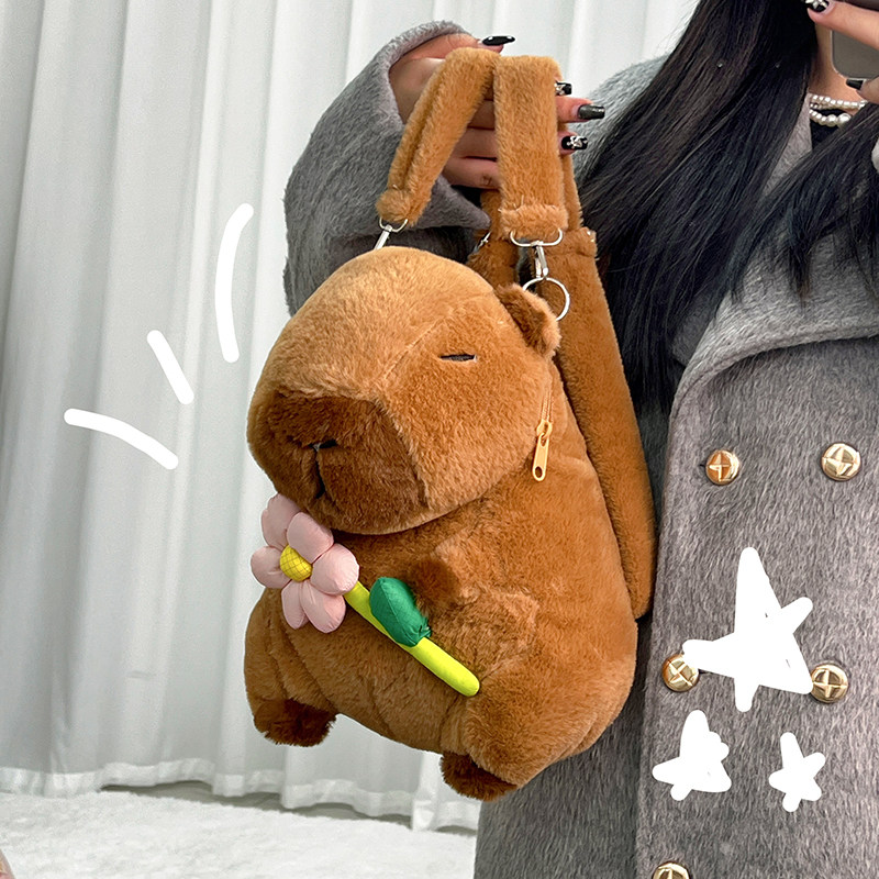 卡皮巴拉水豚双肩背包玩偶呆萌公仔女孩子书包背包大容量毛绒百搭