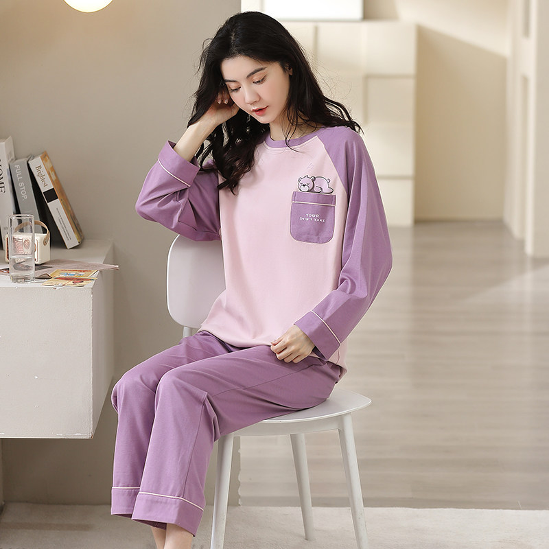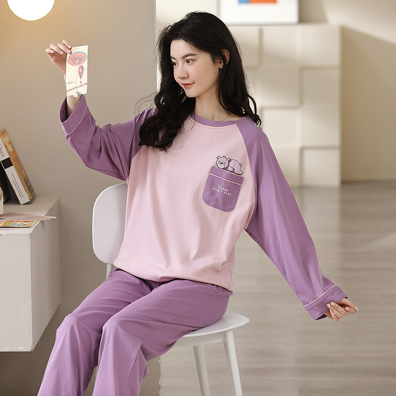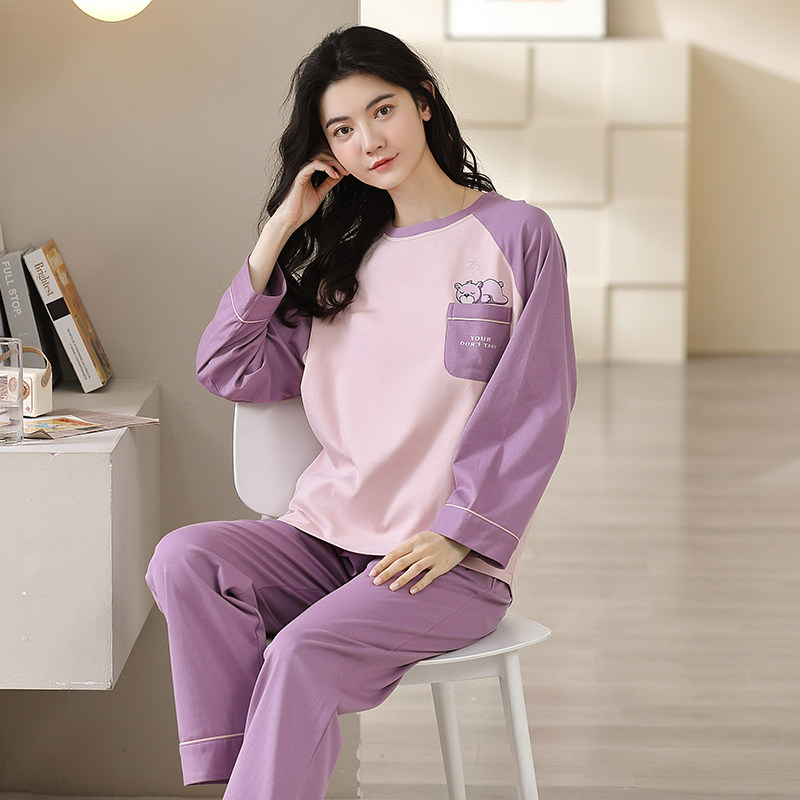 睡衣女春秋2025年新款纯棉女士长袖全棉女款带胸垫秋冬家居服套装