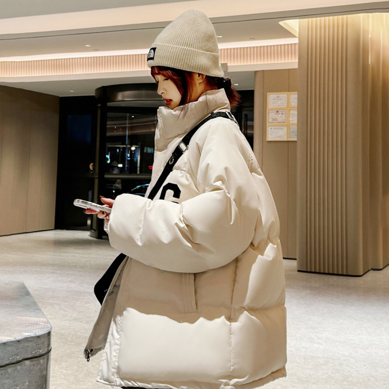 甜系羽绒服女2023年冬季新款休闲学生宽松学院风白鸭绒面包服外套