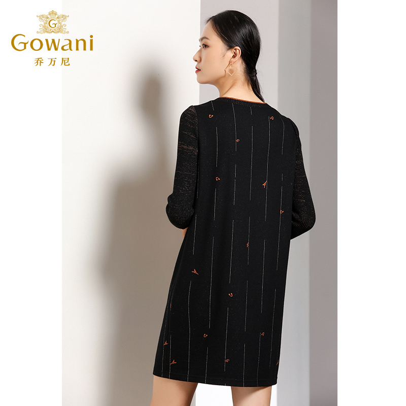 乔万尼羊毛连衣裙秋装商场新款女宽松直筒条纹长袖打底裙中长厚