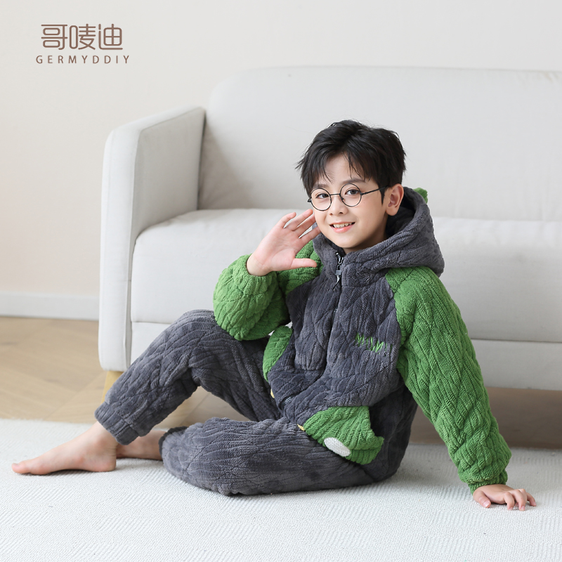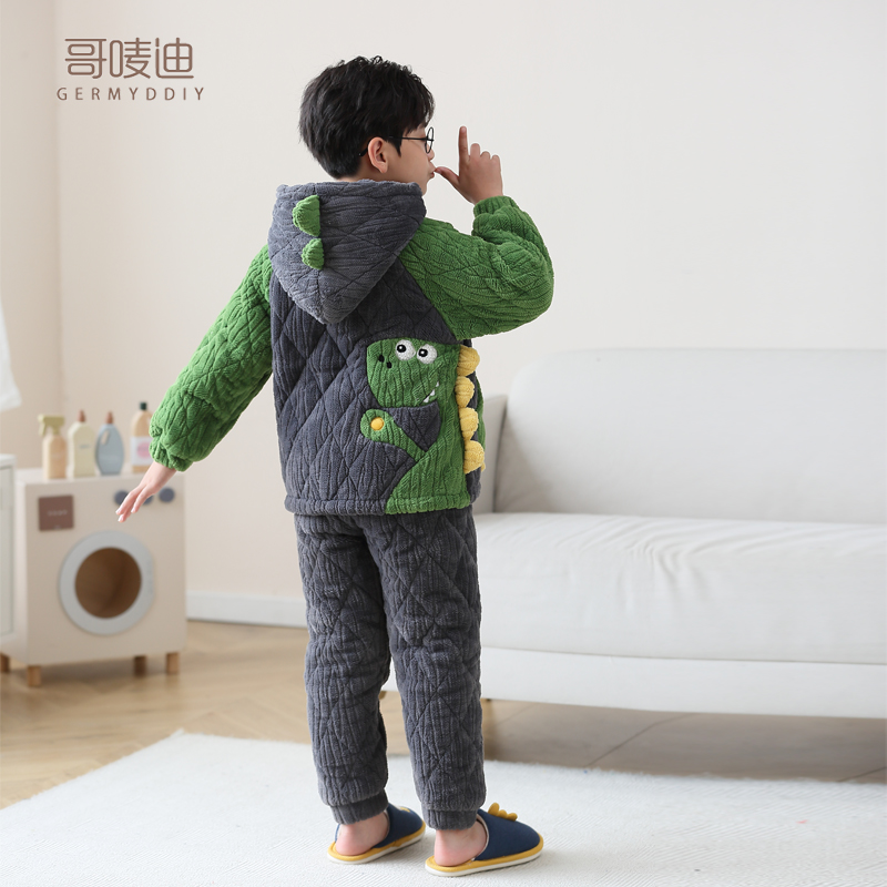 儿童睡衣冬季加厚款珊瑚绒三层夹棉加绒加厚男童保暖卡通家居服