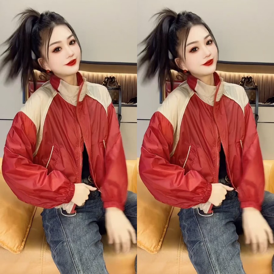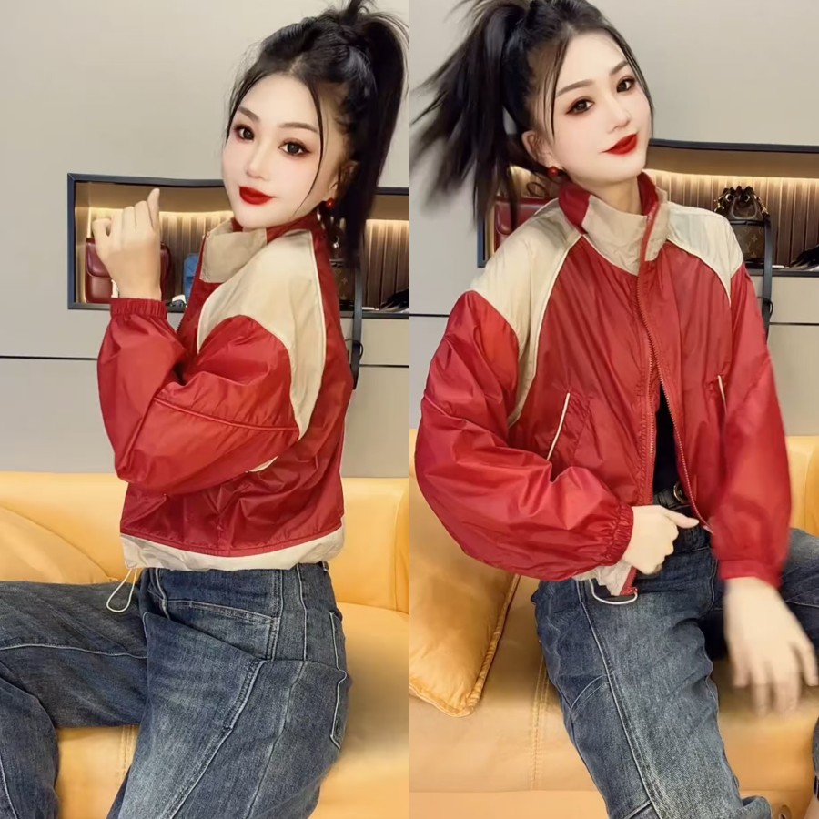 休闲拼接撞色外套2025夏季新款时尚立领夹克潮牌洋气时髦夹克上衣