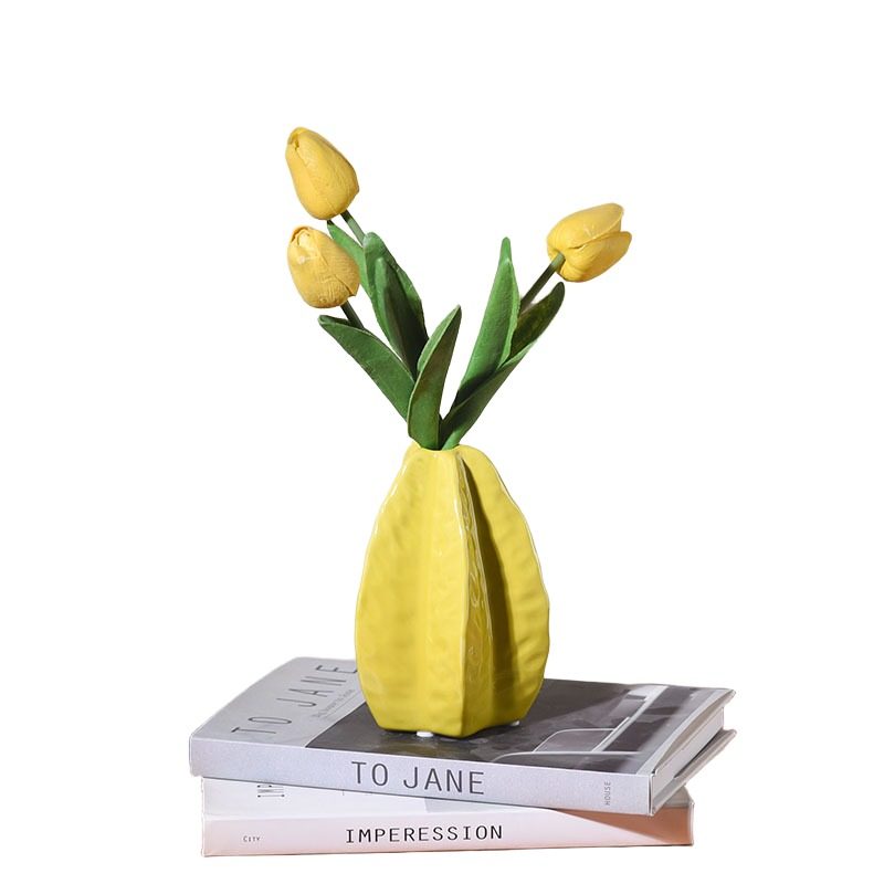 贺新年陶瓷花瓶小摆件高级感柠檬插花器样板房家居饰品仿真花装饰