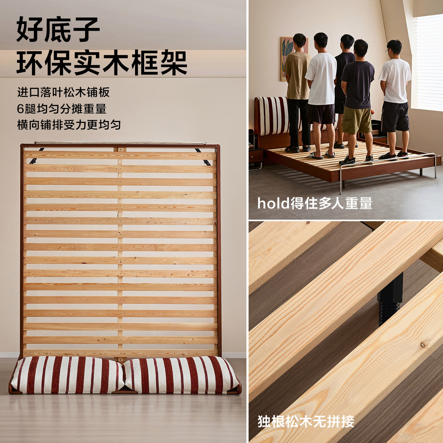 全友家居包豪斯中古风板式床新款小户型卧室1米8软包双人床可拆洗