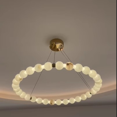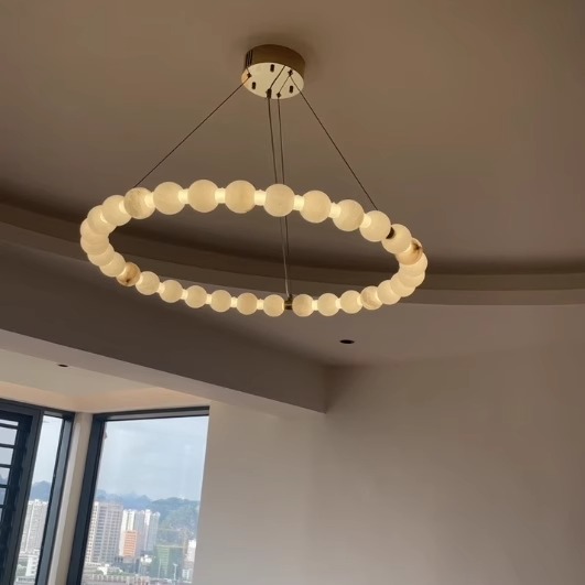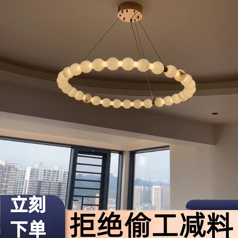 西班牙全铜云石客厅吊灯餐厅灯卧室灯佛珠项链链轻奢大气别墅灯具