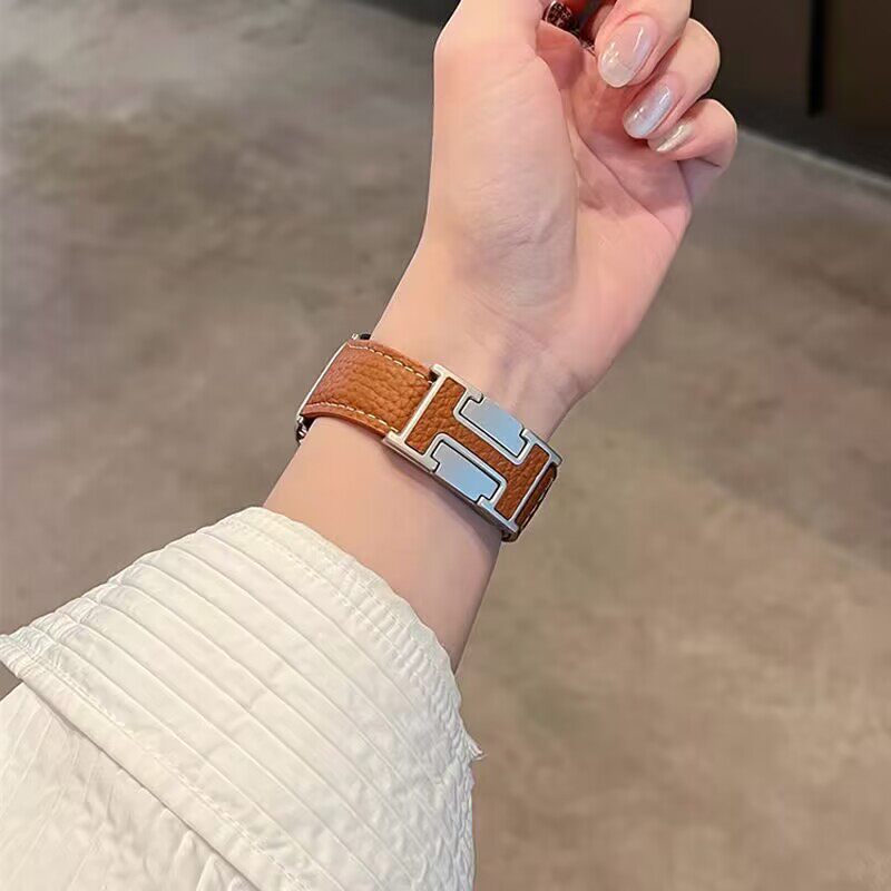 适用华为Fit/new雅致Fit4/3/2时尚高级感新款H磁吸扣荔枝纹皮表带