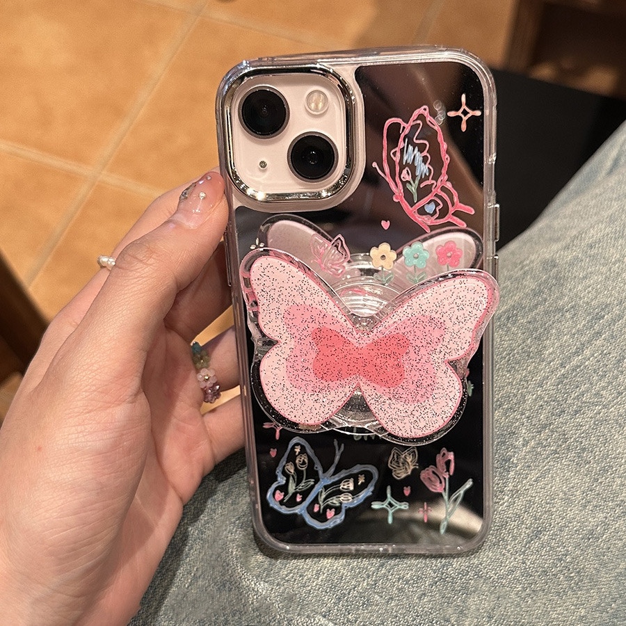 新款镜面涂鸦闪粉蝴蝶镜面手机壳