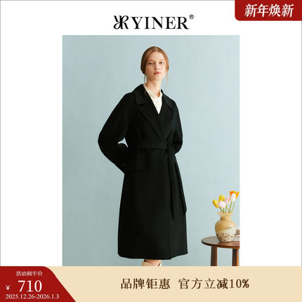 【100绵羊毛】YINER音儿专选女装冬季中长款西装双面毛呢大衣外套