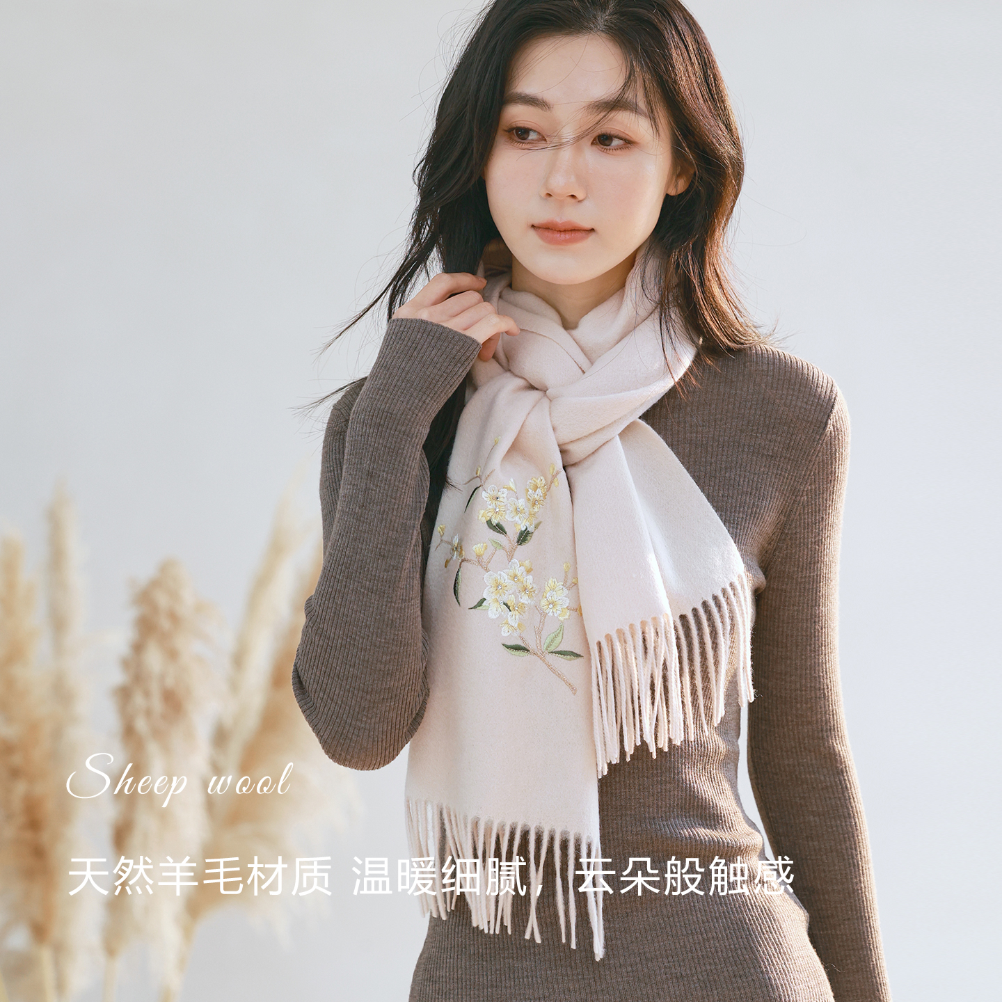 红色纯羊毛围巾女款2025新款秋冬季高级感送妈妈款实用小礼物羊绒