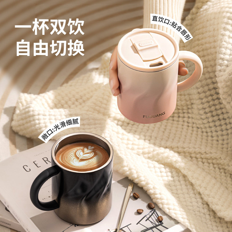 富光316L不锈钢马克杯办公杯子带盖带勺子水杯男茶杯女保温咖啡杯