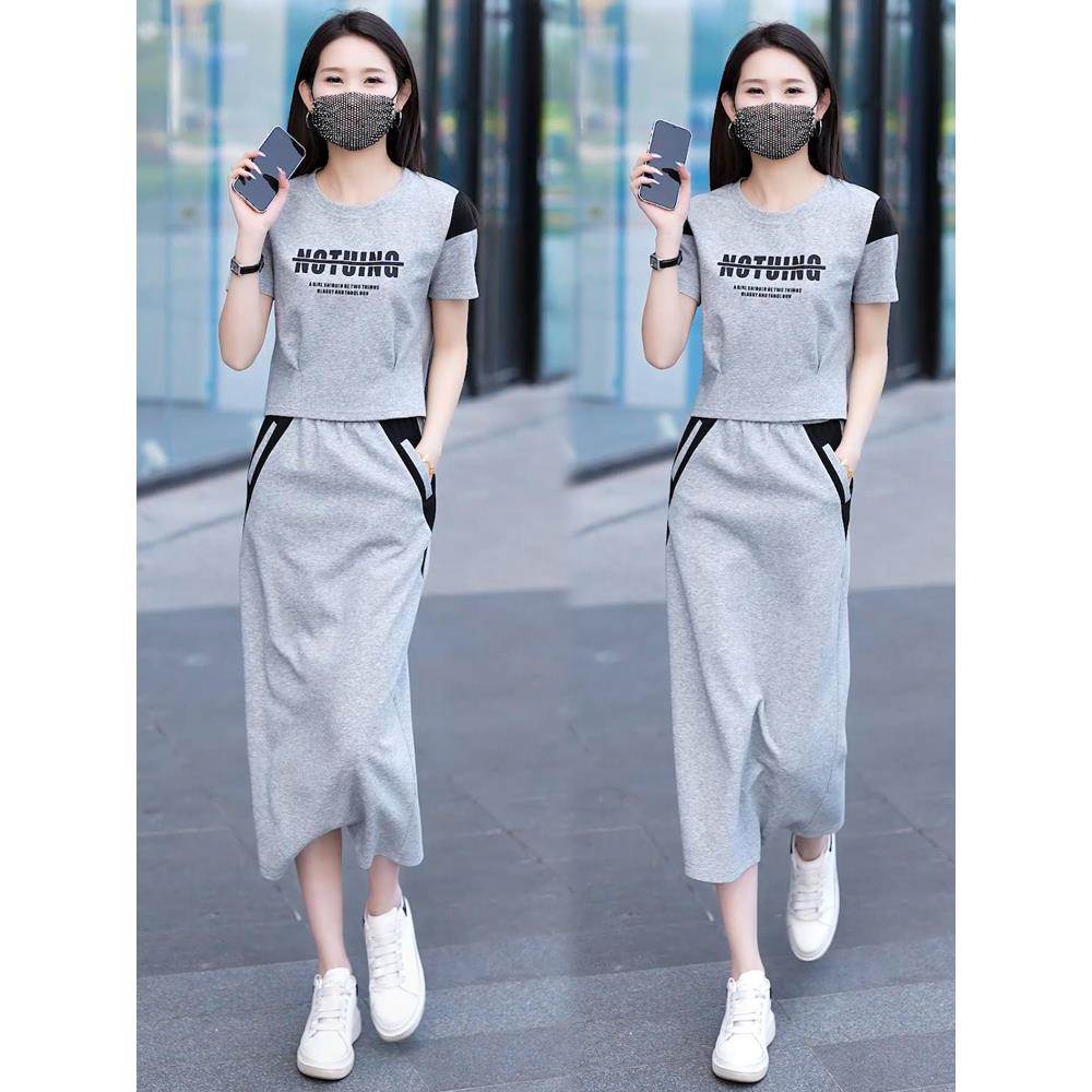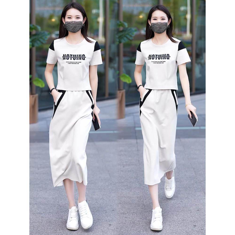 欧陆站夏季女子短袖运动套装盐式高端穿搭休闲时尚裙两件套新潮