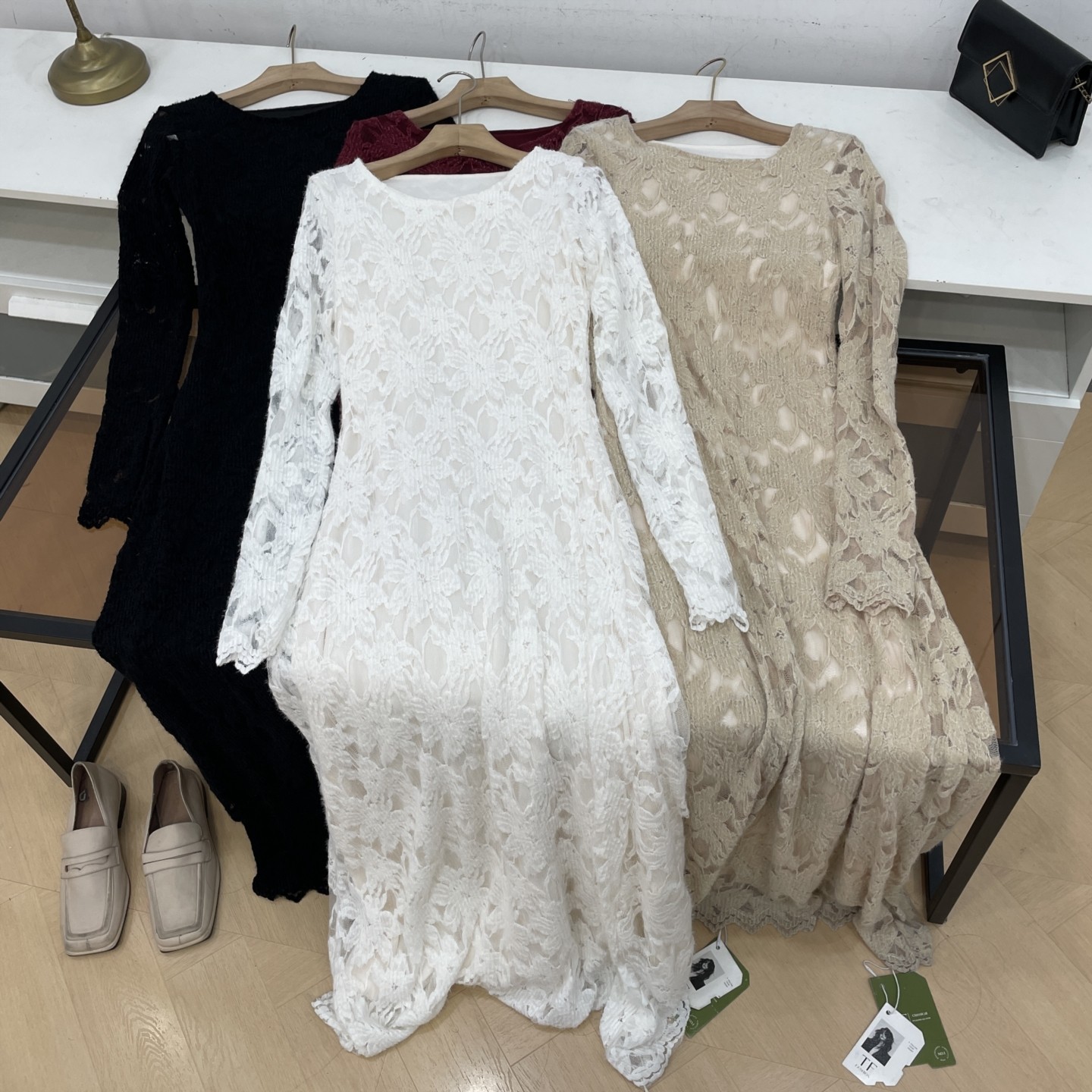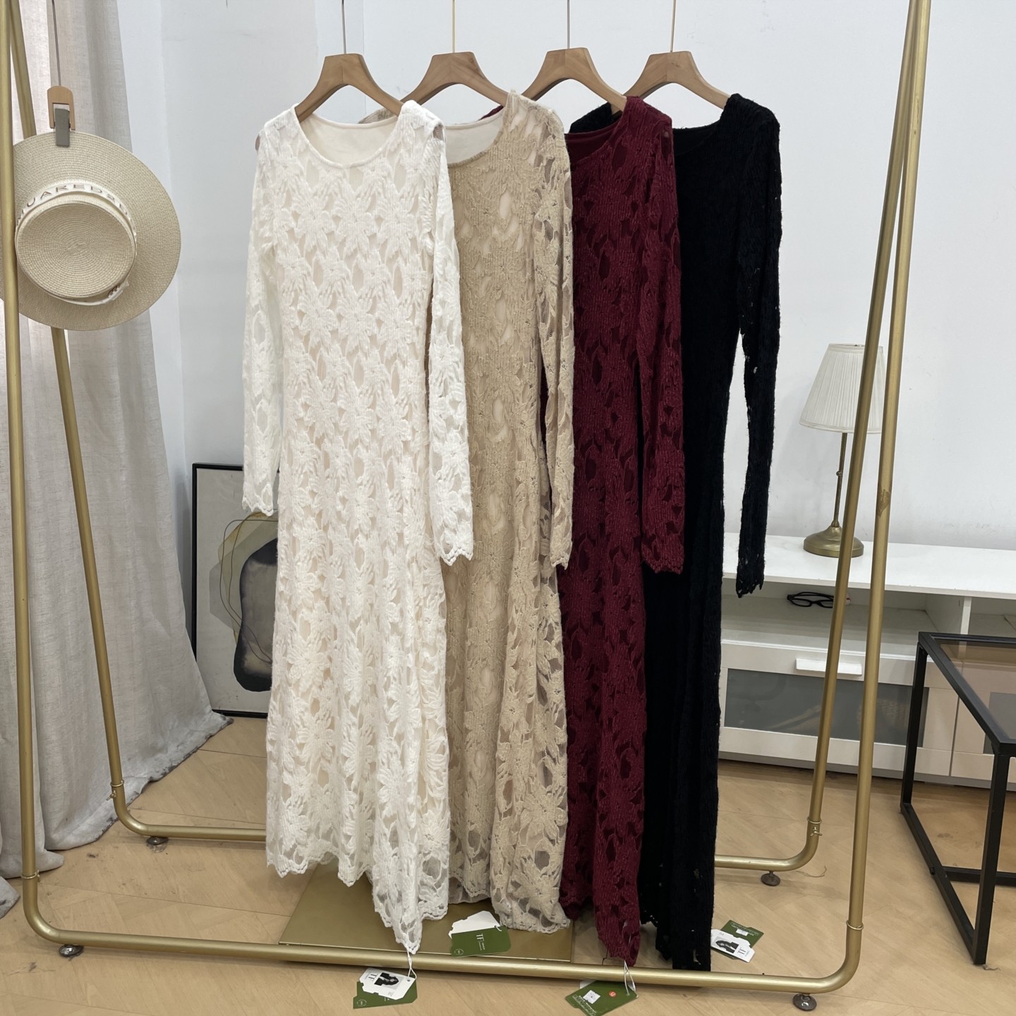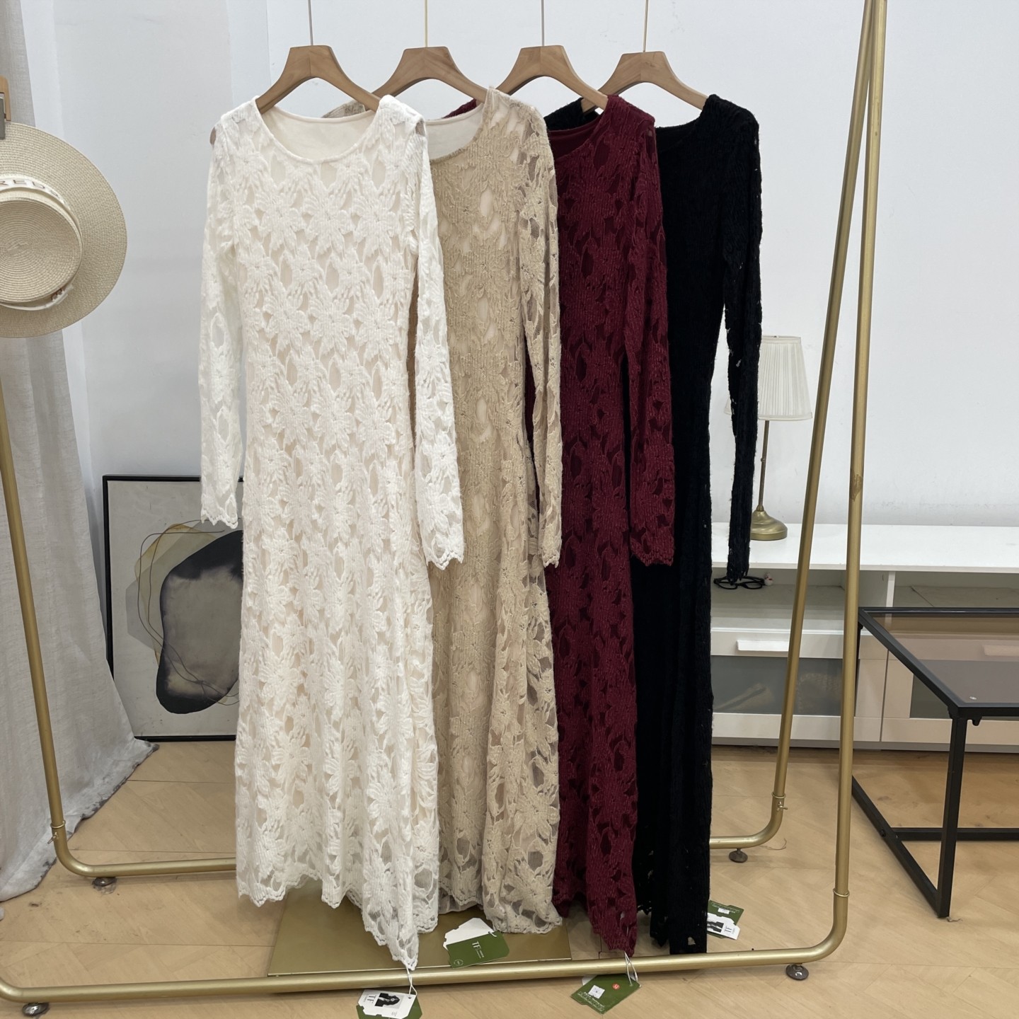连衣裙女法式名媛风精致连衣裙蕾丝掐腰包臀鱼尾连衣裙L#26
