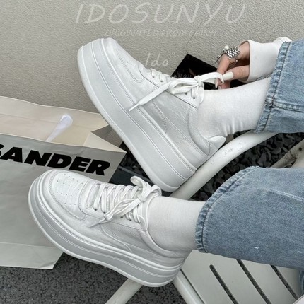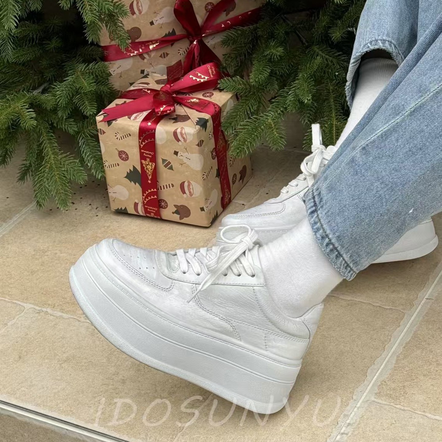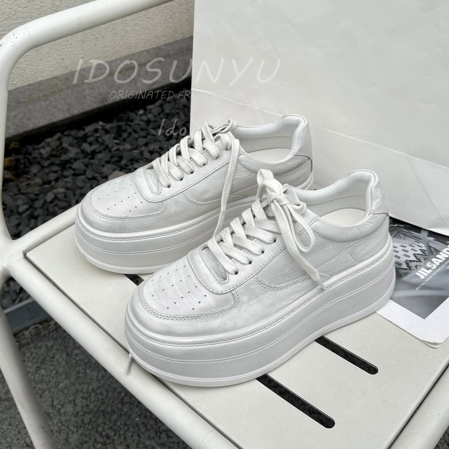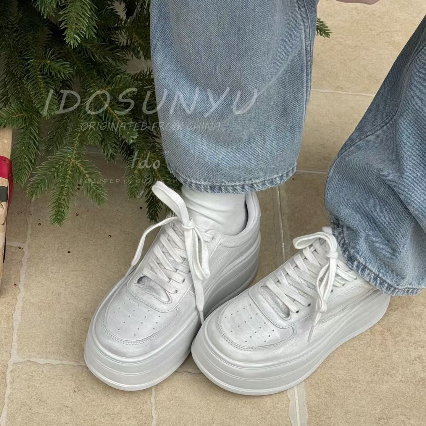 牛皮圆头系带松糕厚底百搭休闲鞋