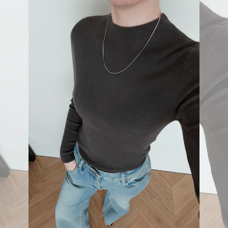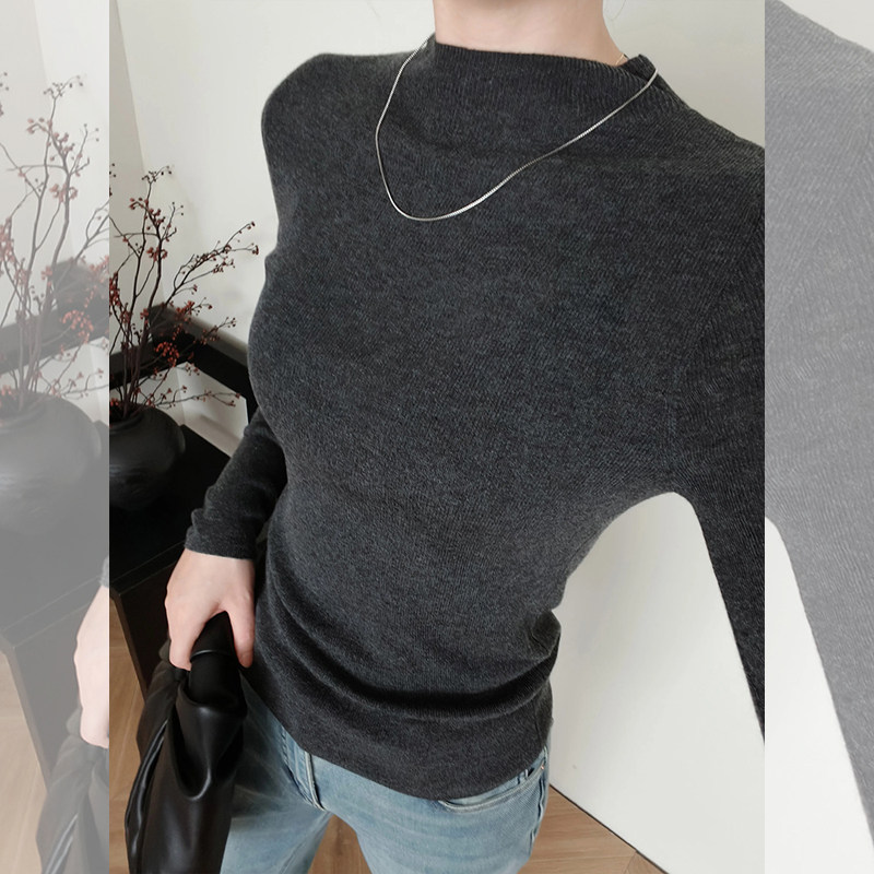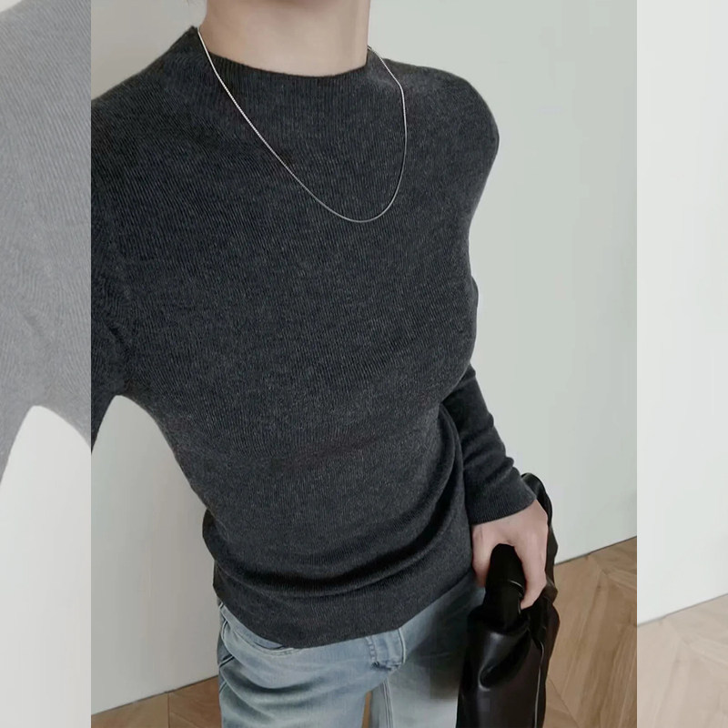 极简针织打底衫女2025秋冬半高领灰色中领羊毛内搭修身气质毛衣