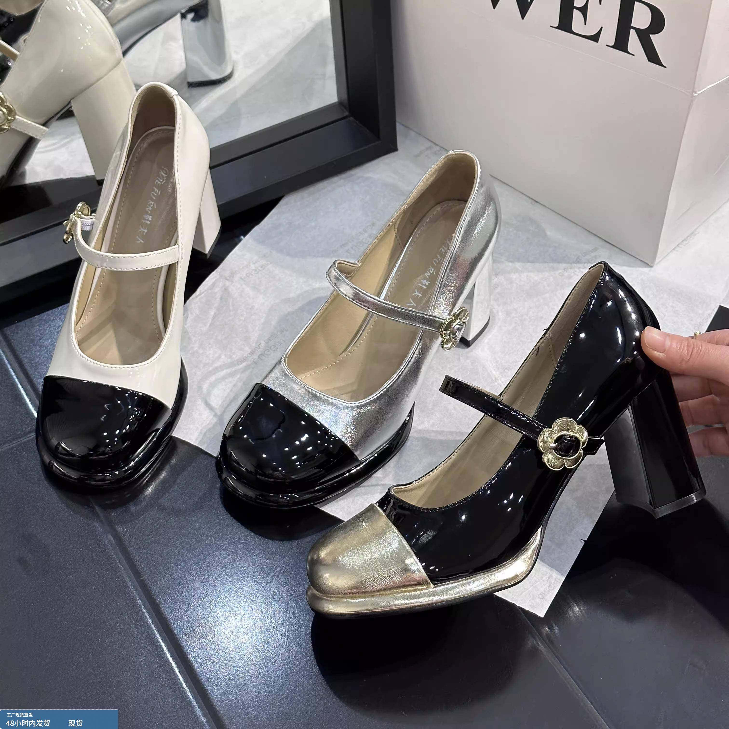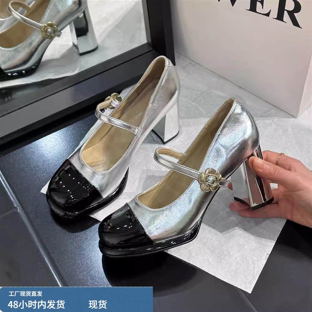 时尚百搭仙女风浅口玛丽珍鞋女2025年春秋季新款圆头粗跟单鞋中跟