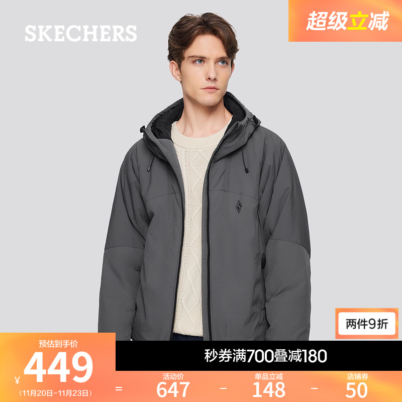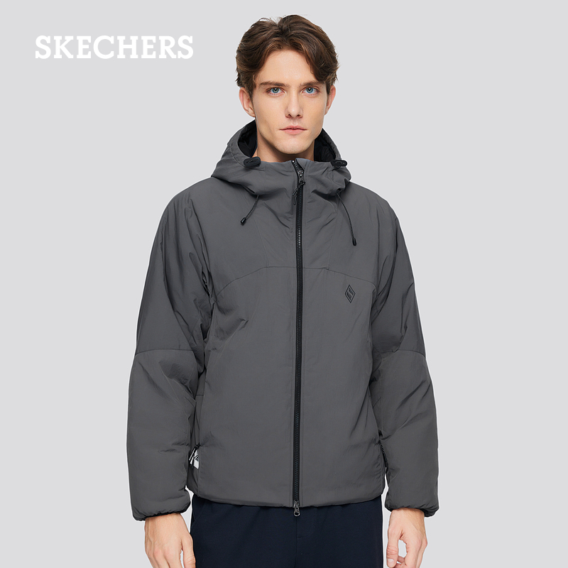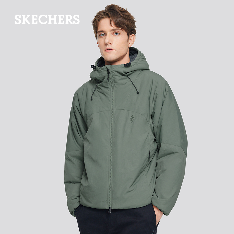 斯凯奇秋冬男士连帽舒适棉服运动夹克防泼水防寒外套户外登山上衣