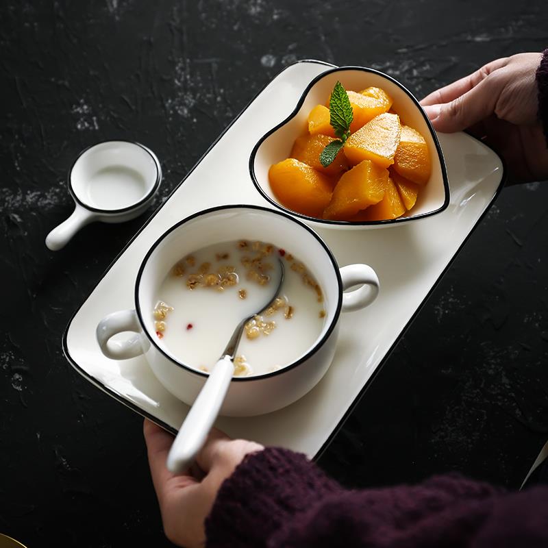 创意早餐餐具一人食套装陶瓷网红家用菜盘碗盘组合餐具北欧早餐盘