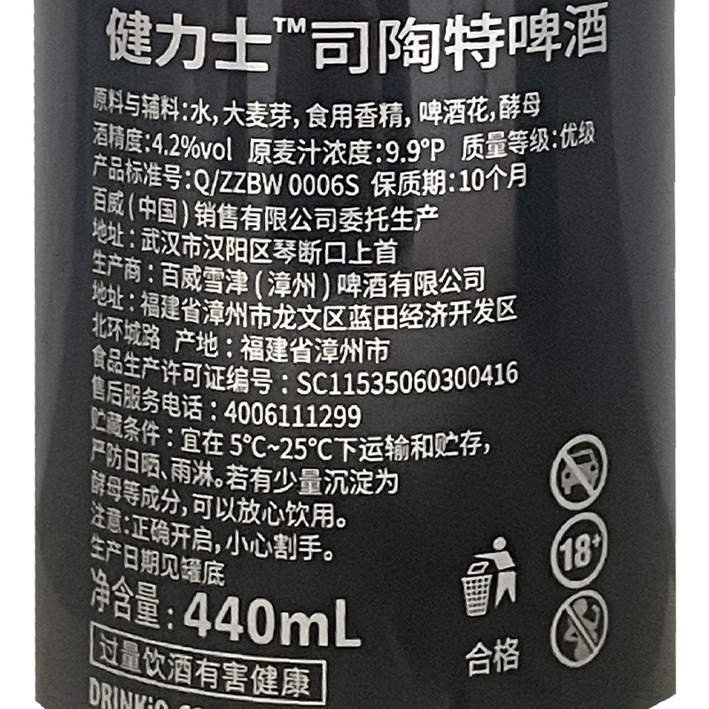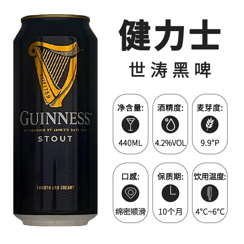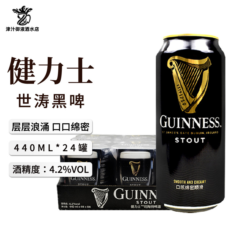 爱尔兰品牌健力士黑啤酒世涛氮气440ml*24听装整箱精酿