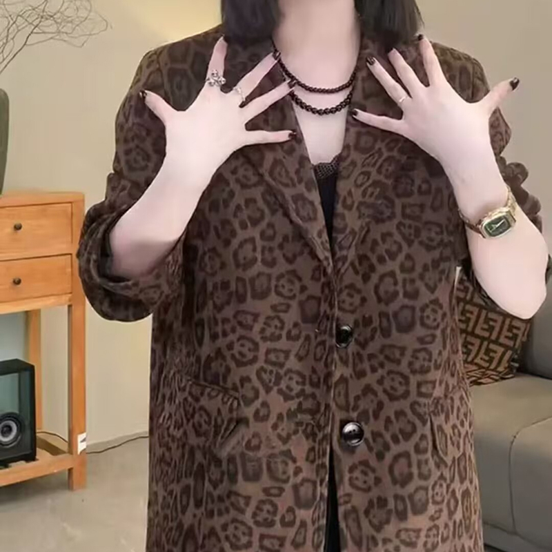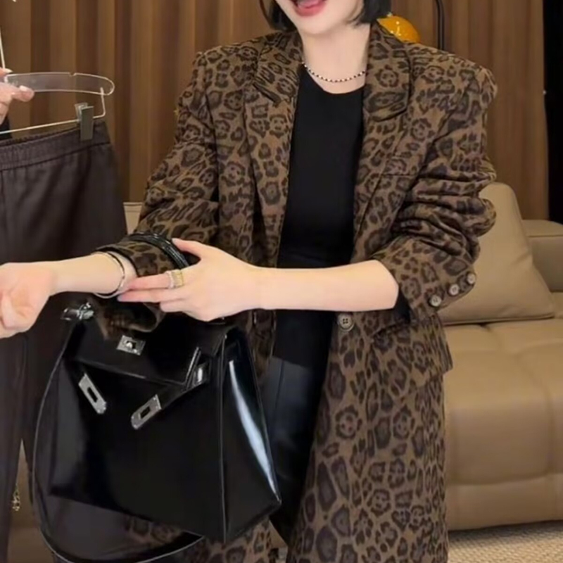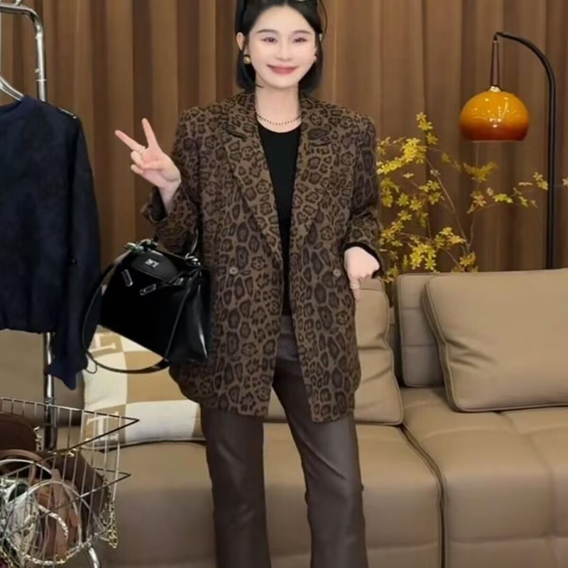 港风复古豹纹西装外套女2025春季新款时尚百搭设计感显瘦西服上衣
