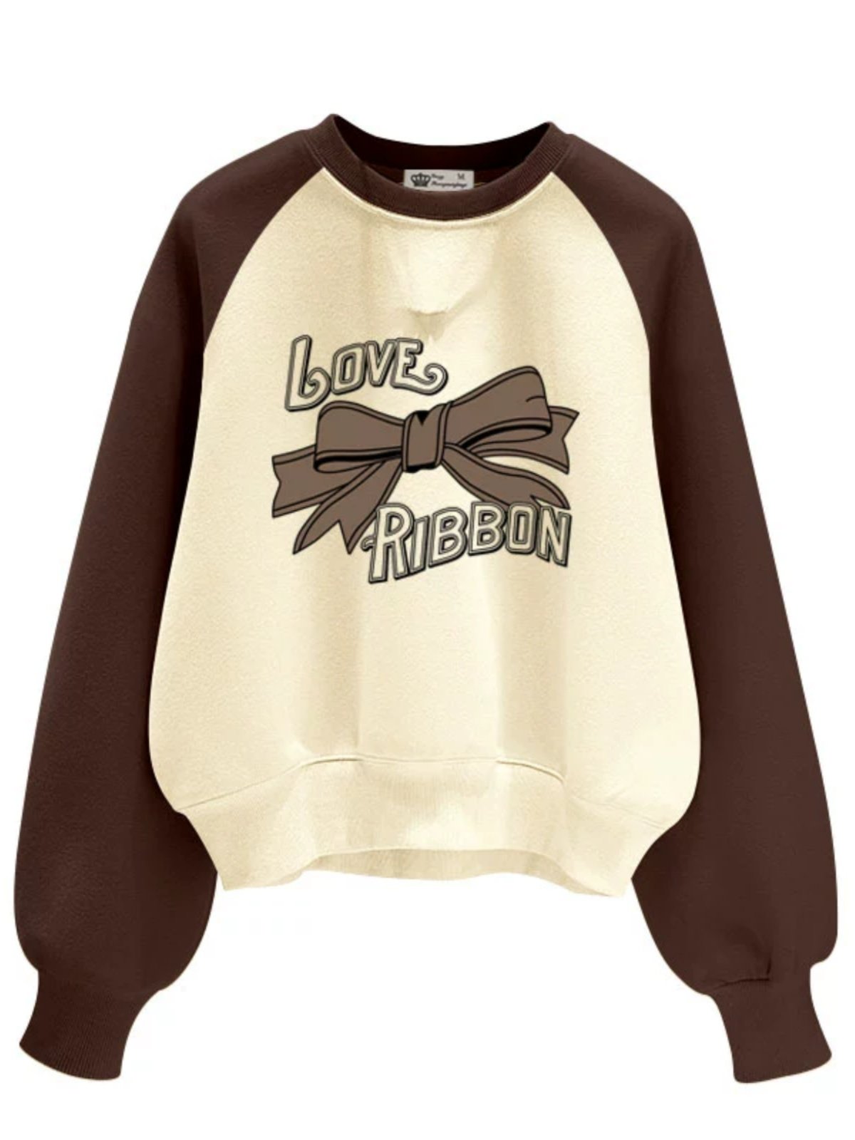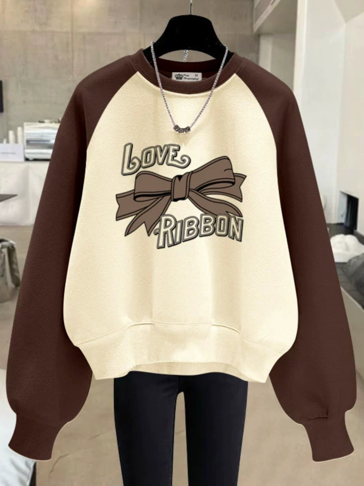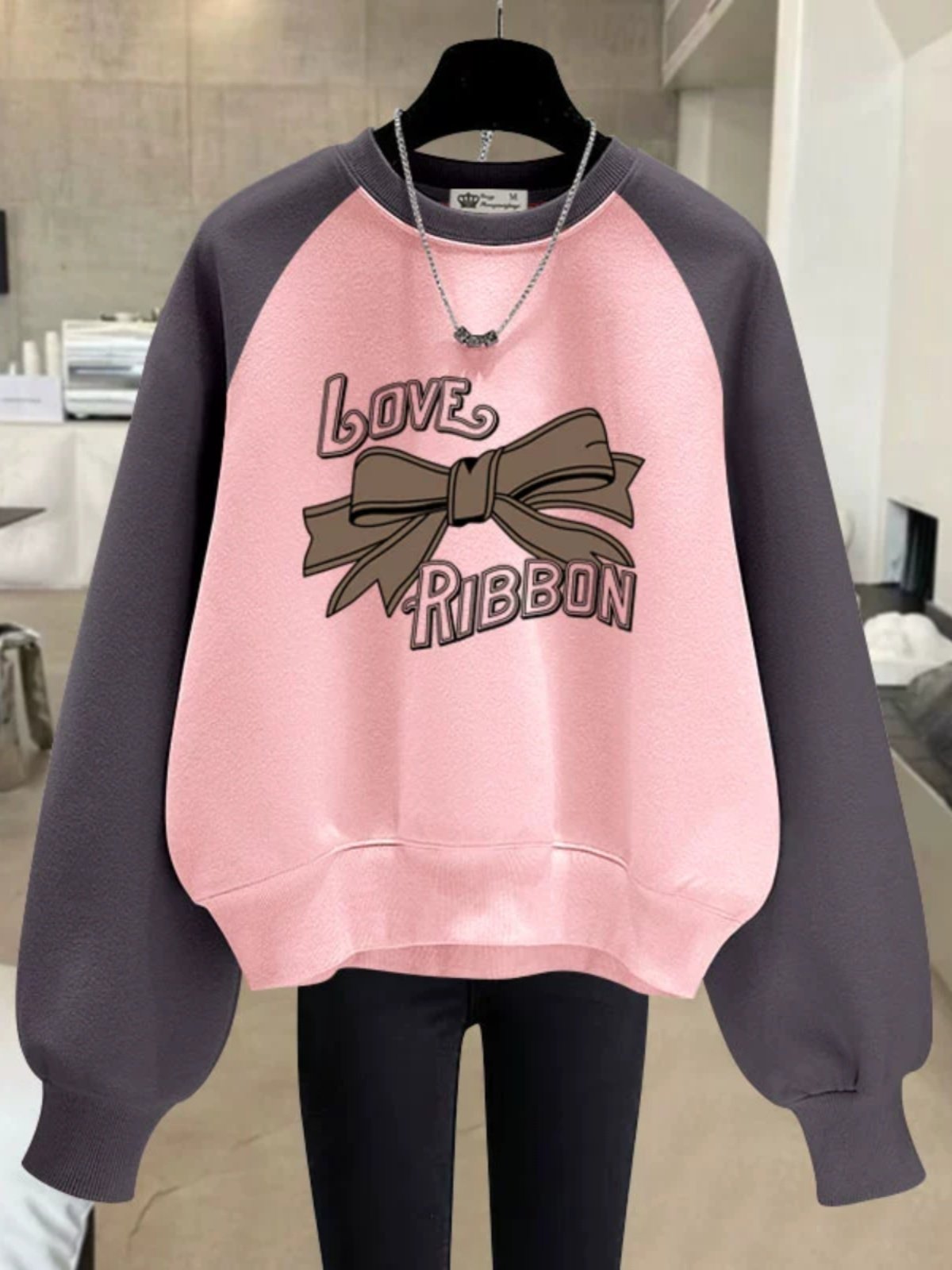 蝴蝶结圆领短款卫衣女2025春秋冬宽松慵懒风加绒加厚长袖套头潮