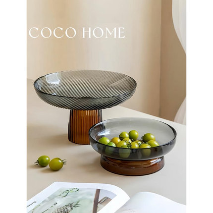 COCO 玻璃果盘彩色高脚摆件现代轻奢家用客厅茶几餐桌零食水果盘