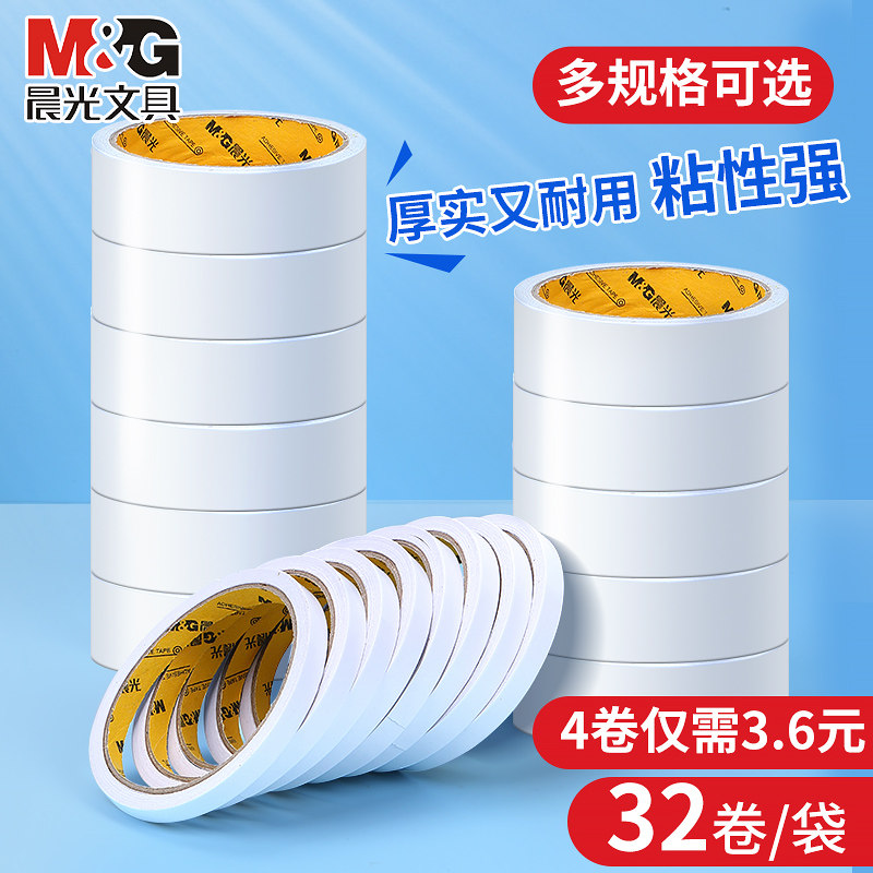 晨光双面胶高粘度强力固定不留痕儿童手工两面双面胶棉纸双面宽胶带学生用diy手撕超薄透明批发文具办公用品