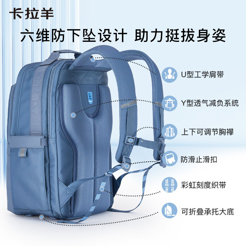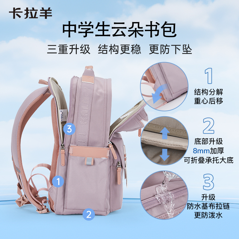 卡拉羊云朵书包女初中生男款减负轻便耐用双肩背包男高中学生包包