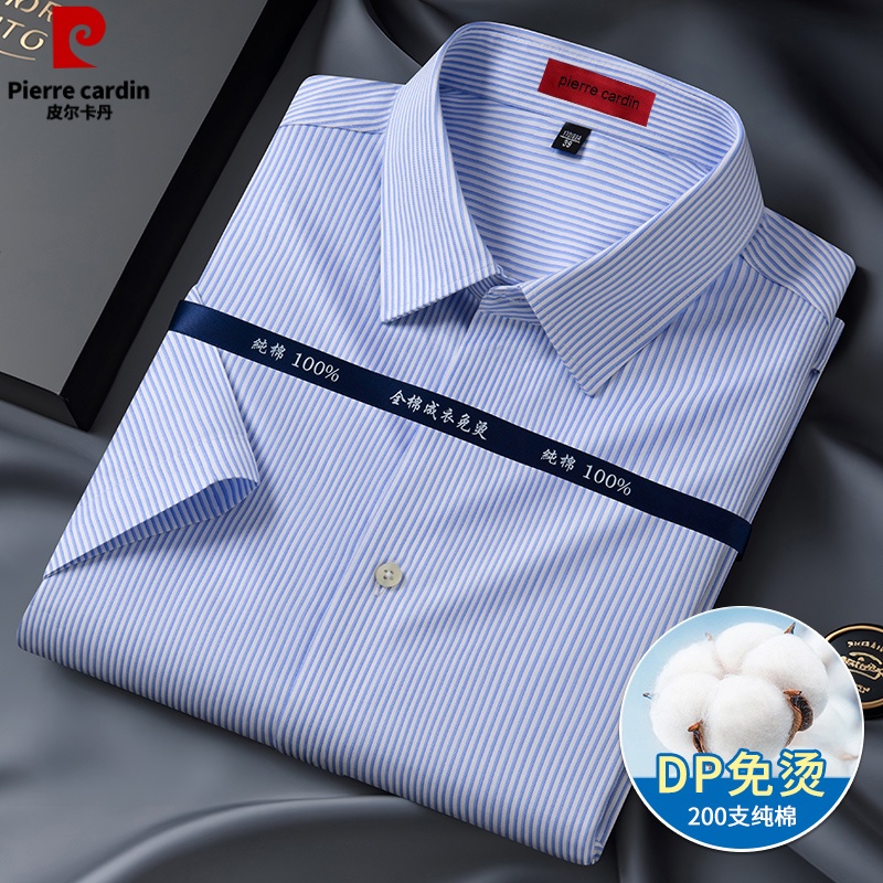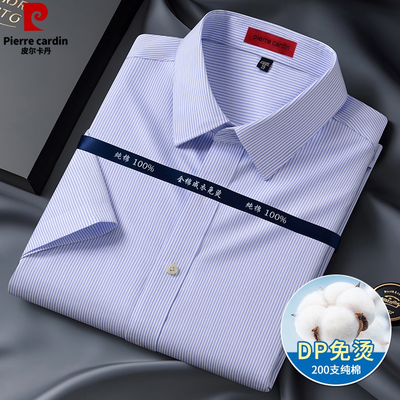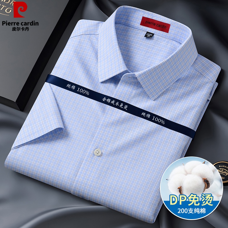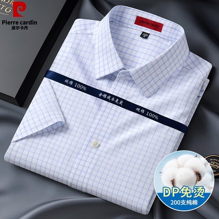 皮尔卡丹正品男士短袖DP纯棉衬衫夏季新款中老年商务免烫高档衬衣